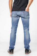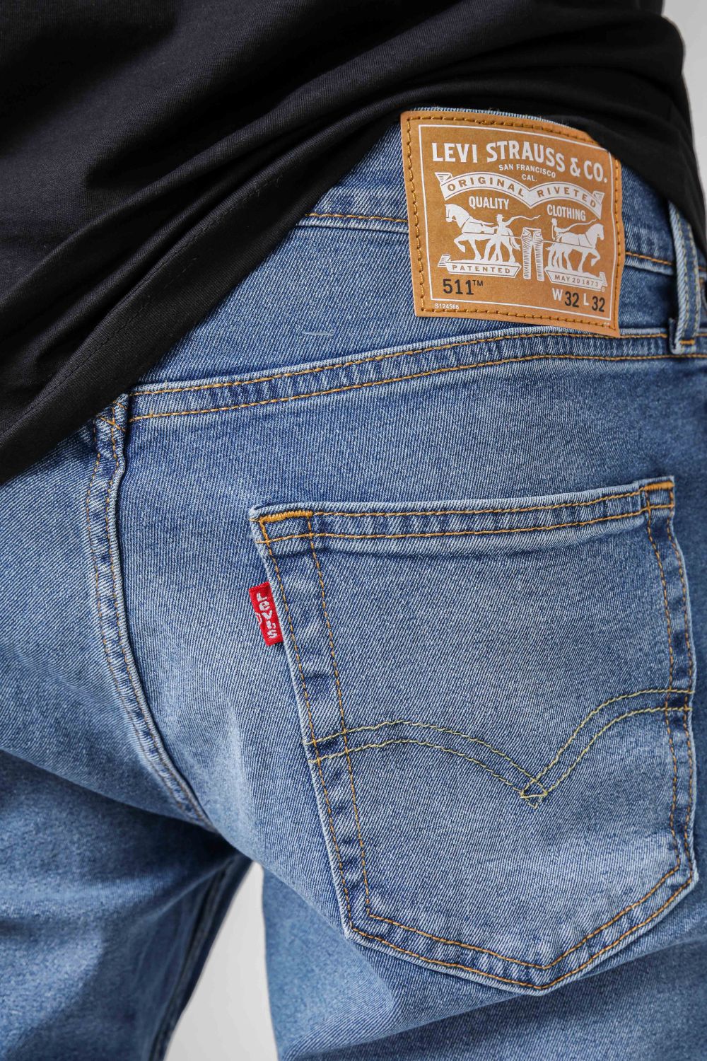 ג'ינס מבית המותג Levi's לגברים בצבע כחול, בגזרה צמודה, בגובה המותן, מבד נמתח ונוח, בעל רוכסן וכפתור לפתיחה וסגירה וכיסים קדמיים ואחוריים.