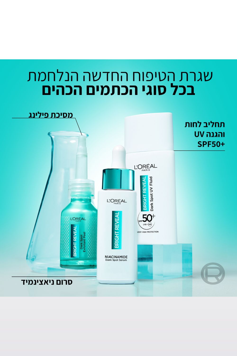 תחליב UV לטשטוש כתמים כהים המכיל SPF50 להגנה גבוה מאוד.
