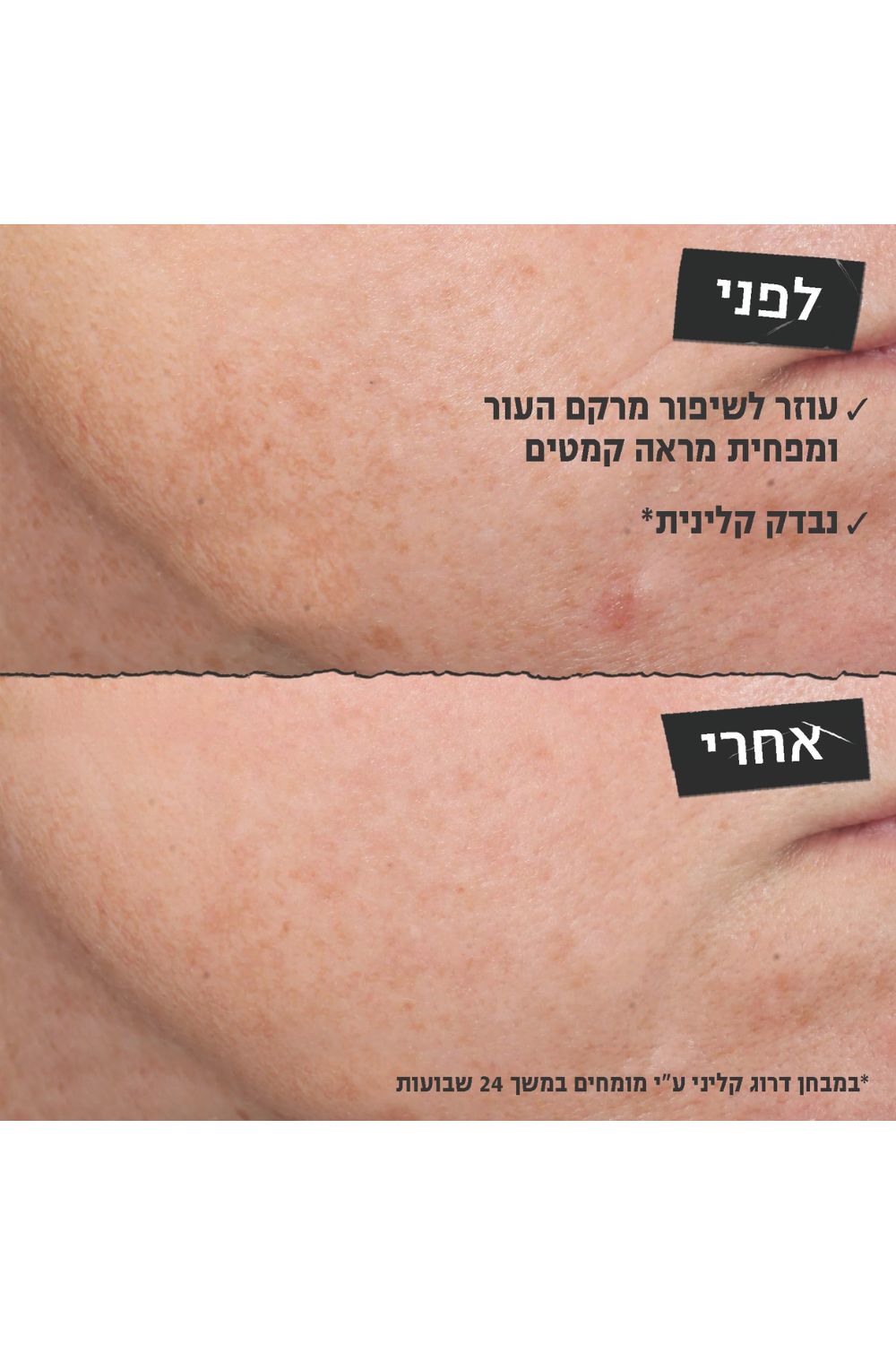 סרום מיקרו-רטינול יומילחידוש מראה העור תמצית יומית מסייעת לחיזוק מראההעור המכילה מינון מדוייק של רטינול טהור, פפטיד וסרמידיםנבדק קלינית/מחקרית* כמסייע בחידוש תאי העור באופן יציב וקבועושיפור נראה לעין של מיצוק העור, הפחתת מראה הקמטים ועידון מרקםהעור תוך הפחתת תופעות אי נוחות לעור לרבות מראה אדמומי,יובש וקילוף העור.