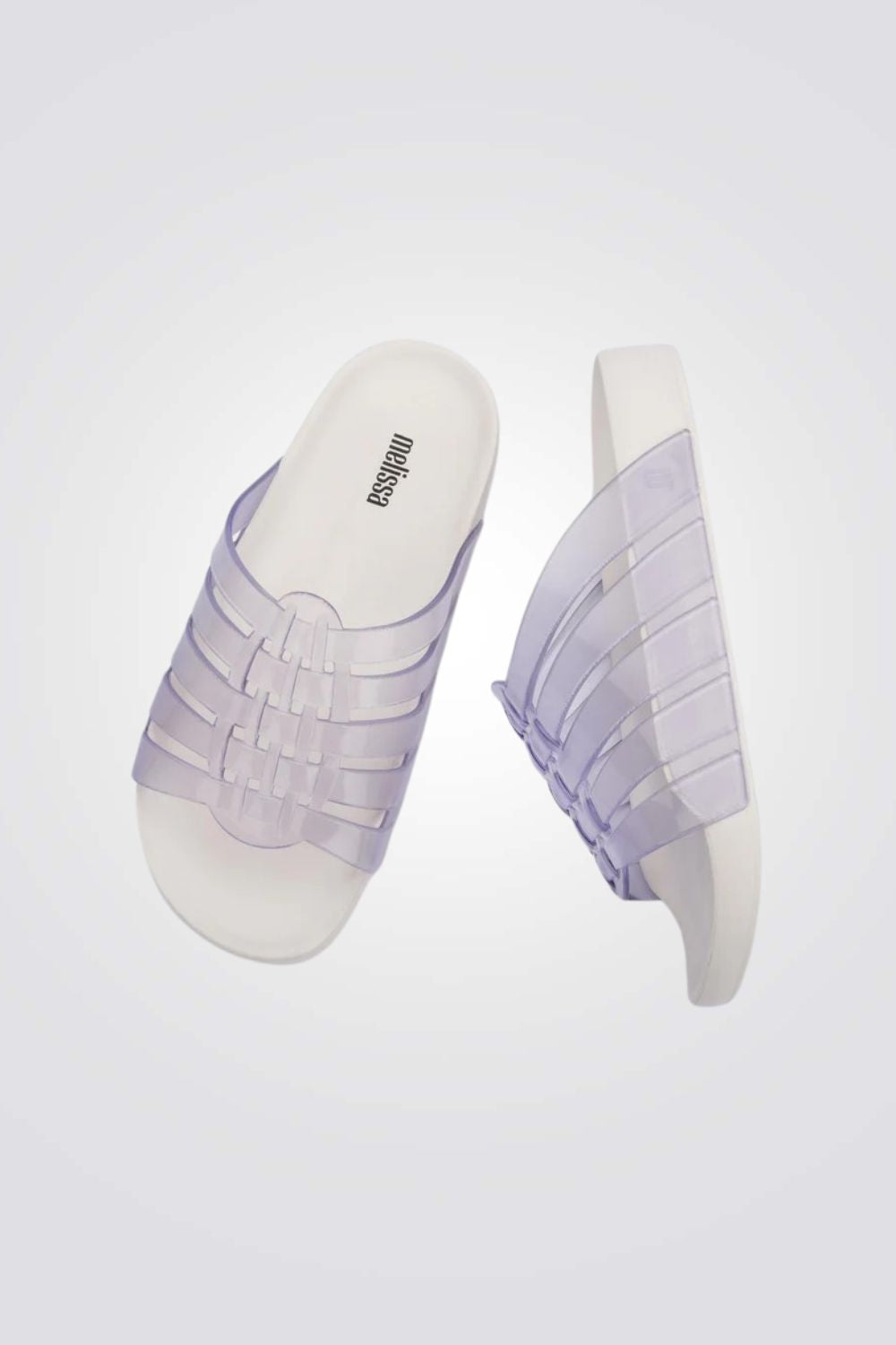 כפכפים לנשים מבית המותג MELISSA, בצבע שקוף, בסגנון Fisherman, עם סוליה רכה וגמישה להתאמה מקסימלית לכף הרגל.
