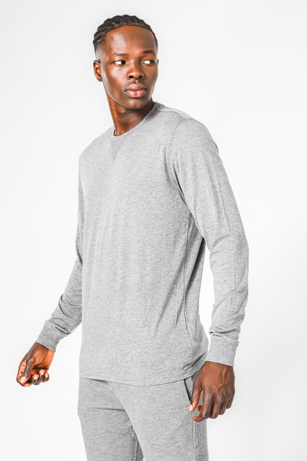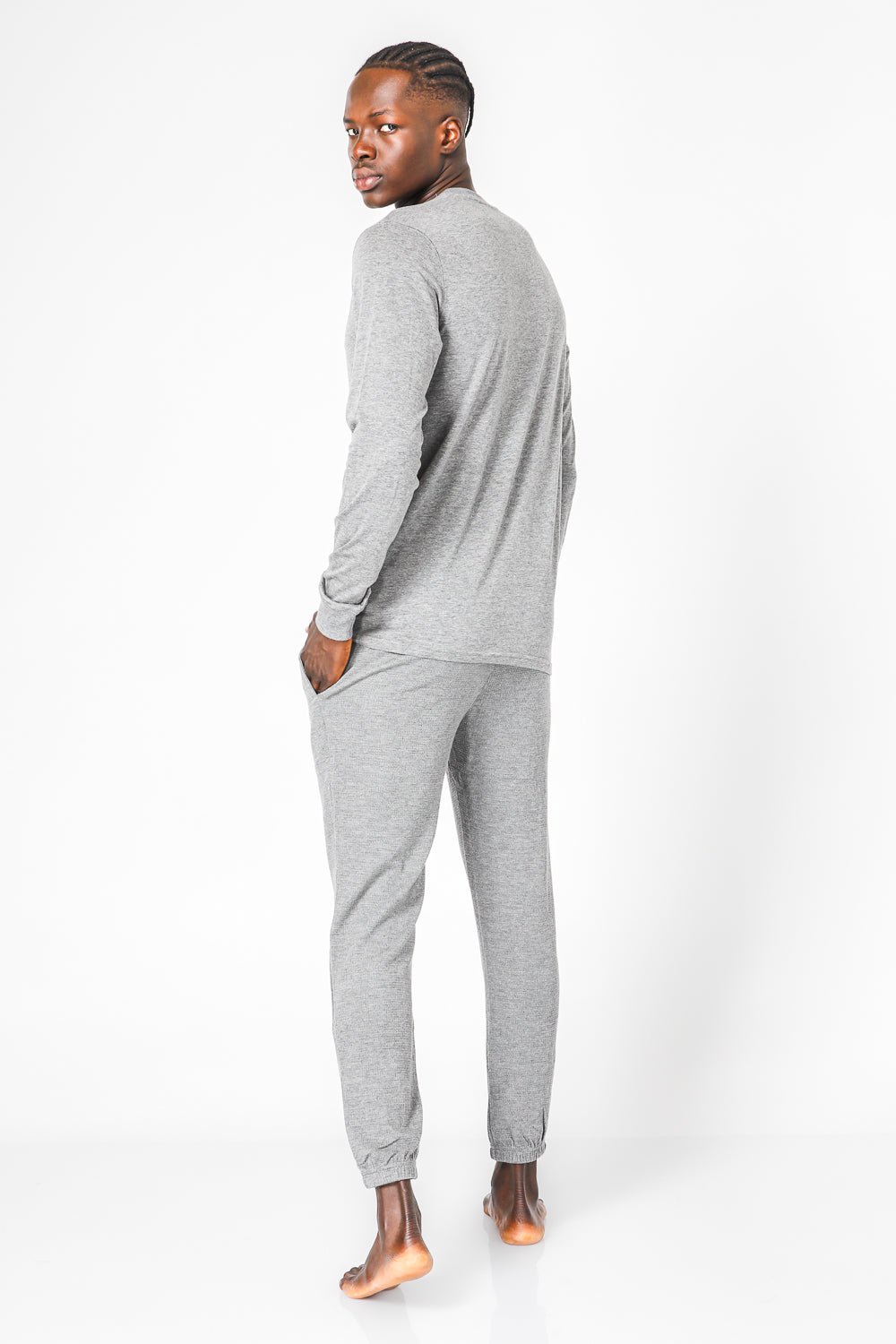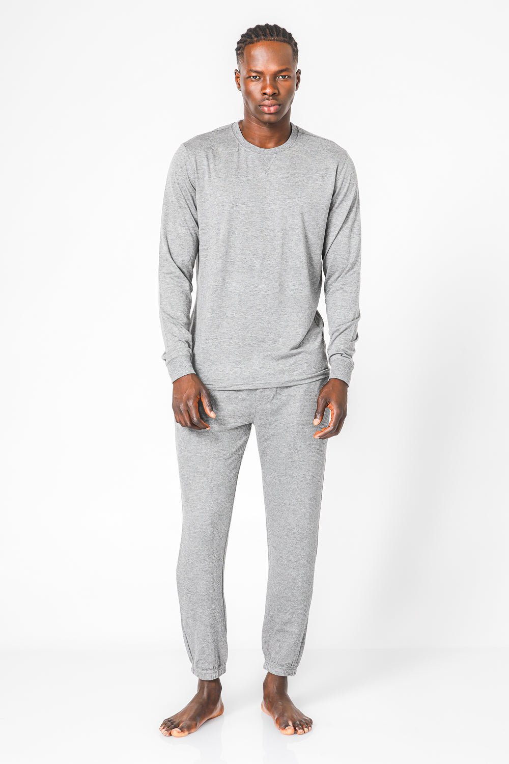 סט פיג’מה ארוכה דקה מבד במבוק לגברים בצבע אפור