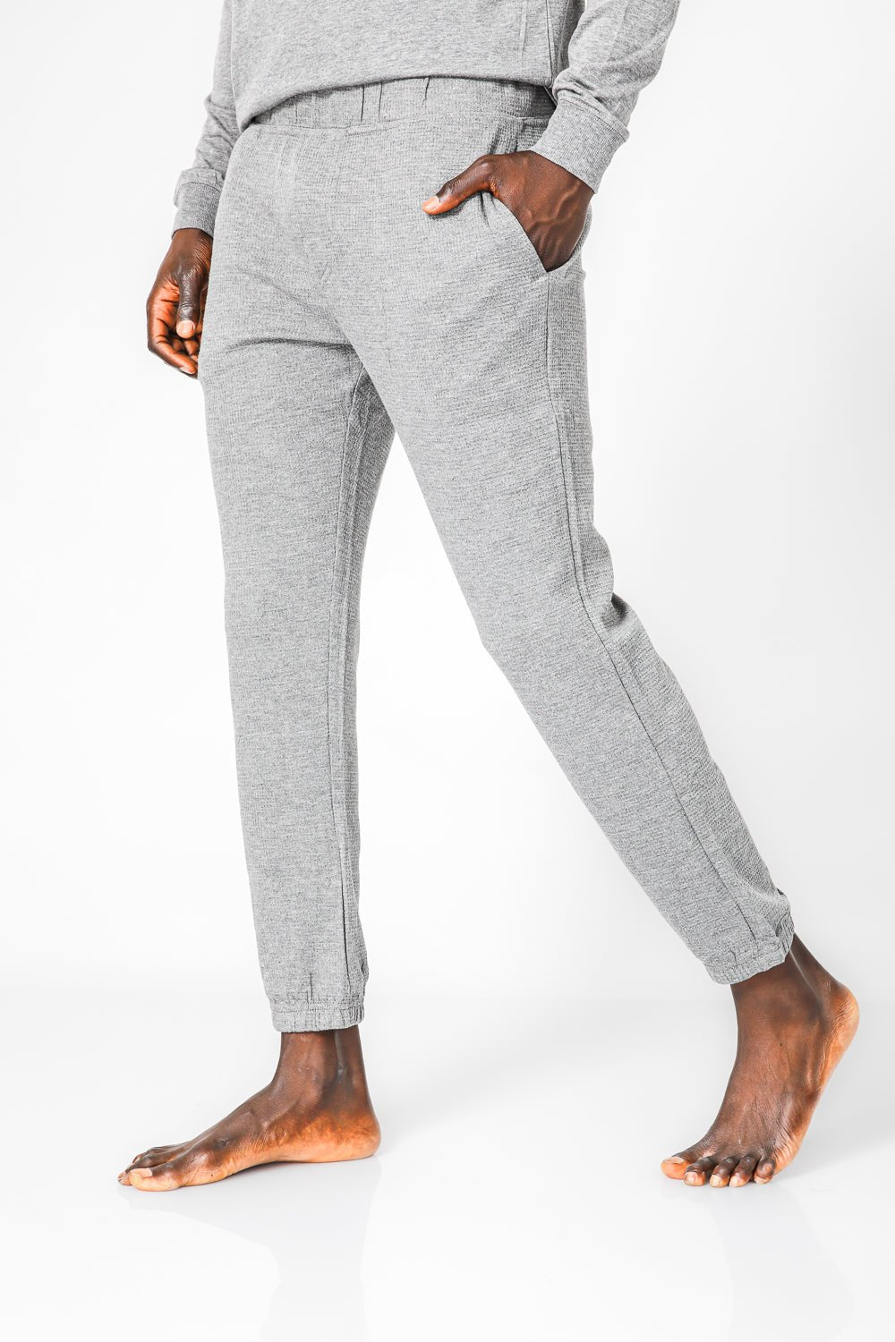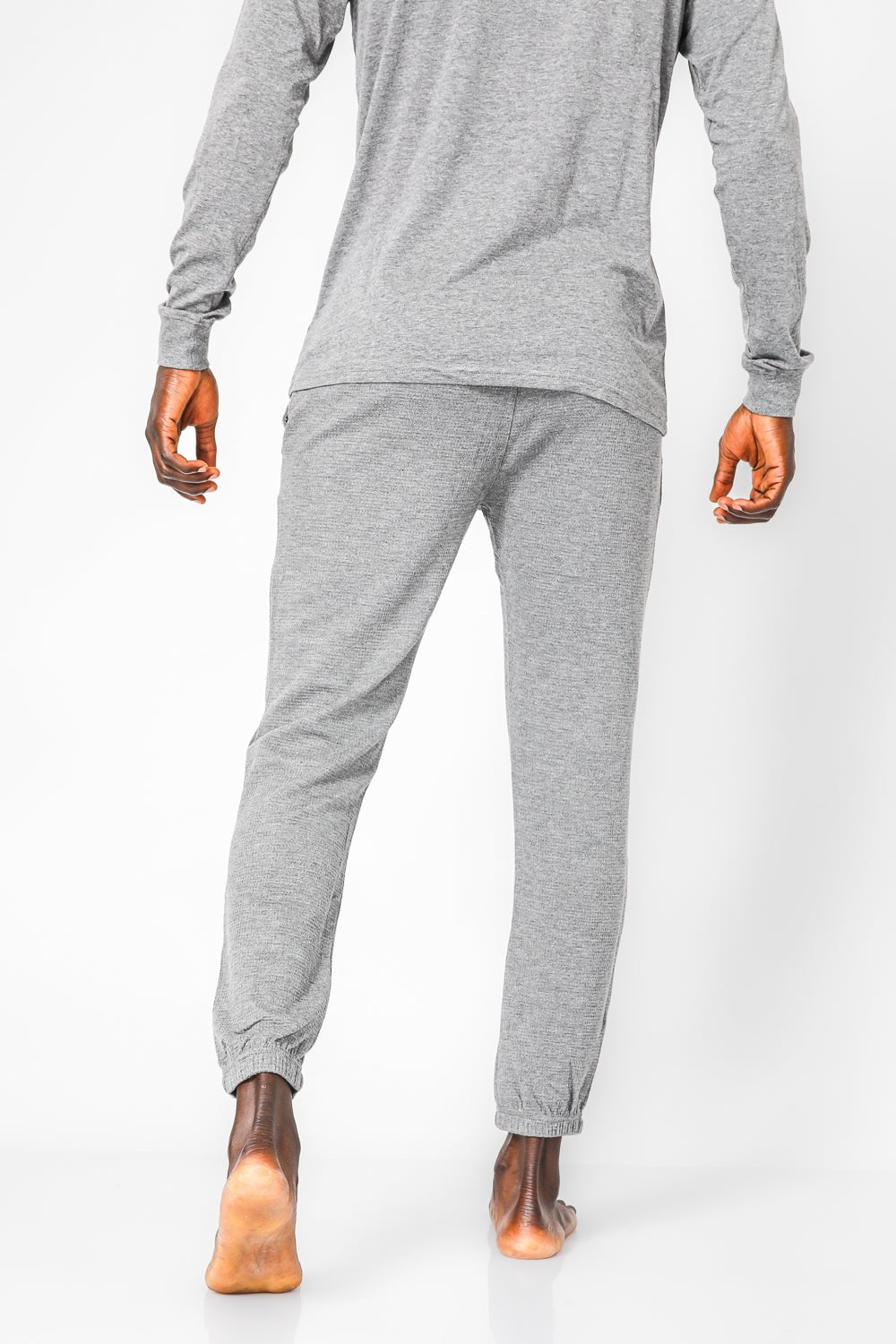 סט פיג’מה ארוכה מבד במבוק רך בטקסטורת וופל. חולצה עם שרוולים ארוכים, צווארון עגול וסיומת מנג’ט ומכנסיים ארוכים עם גומי, כיסים וסיומת מנג’ט.