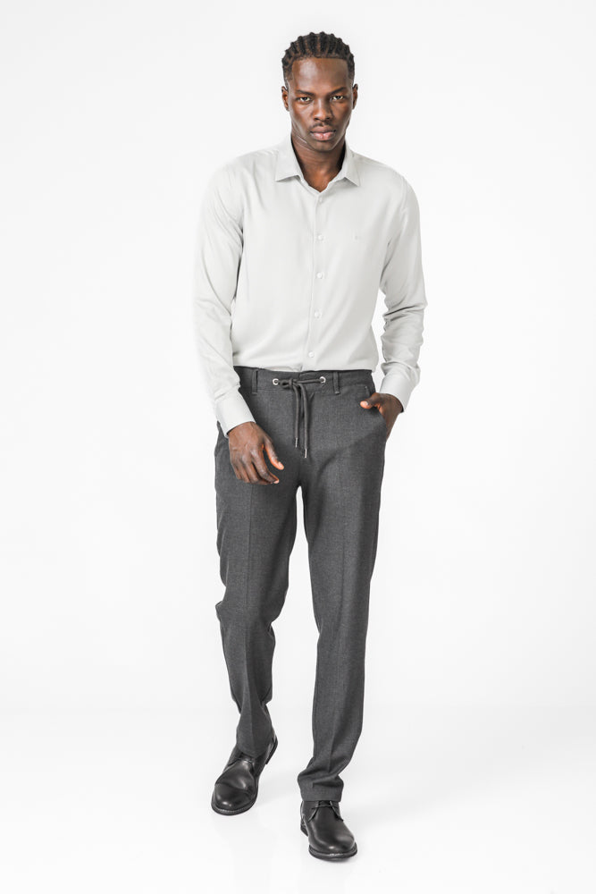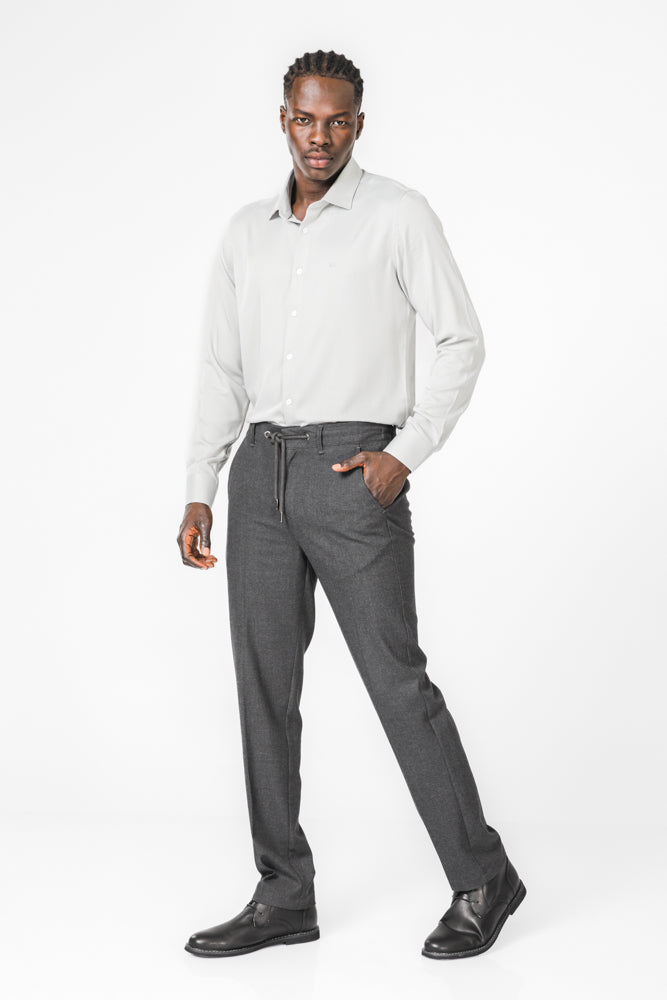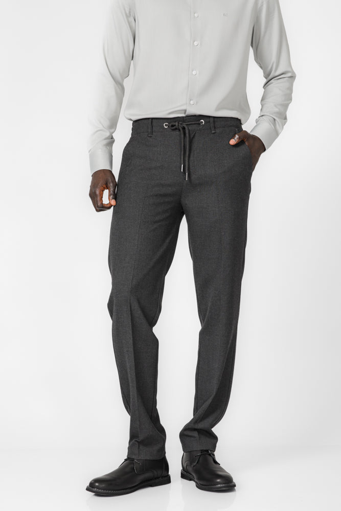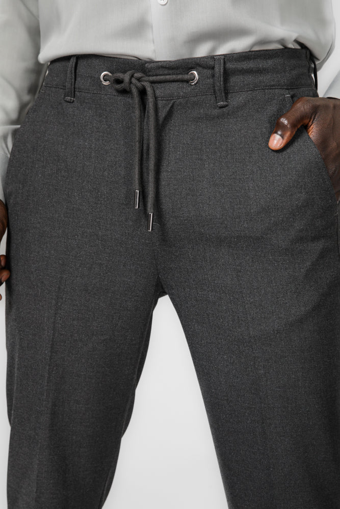 מכנסיים אלגנטיים עם שרוך בצבע אפור כהה