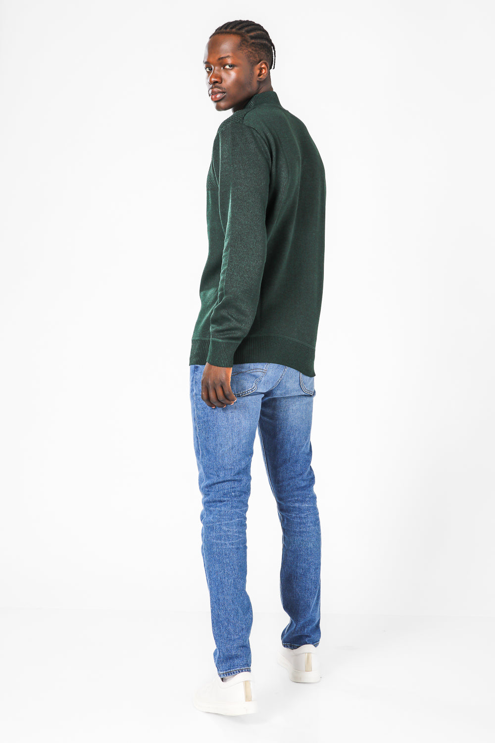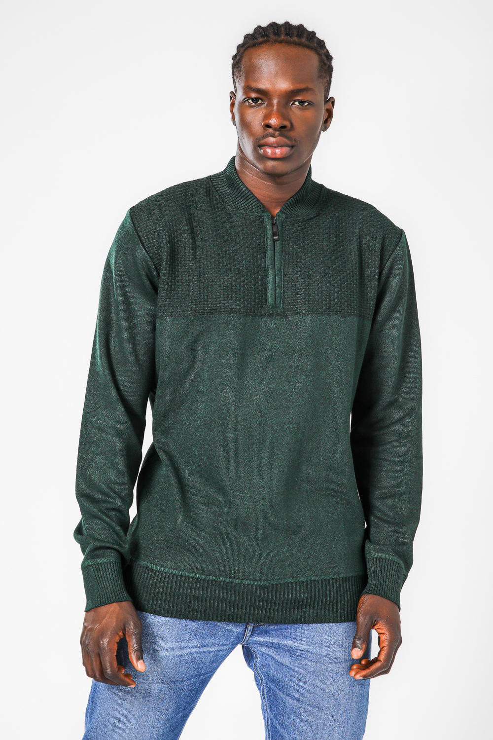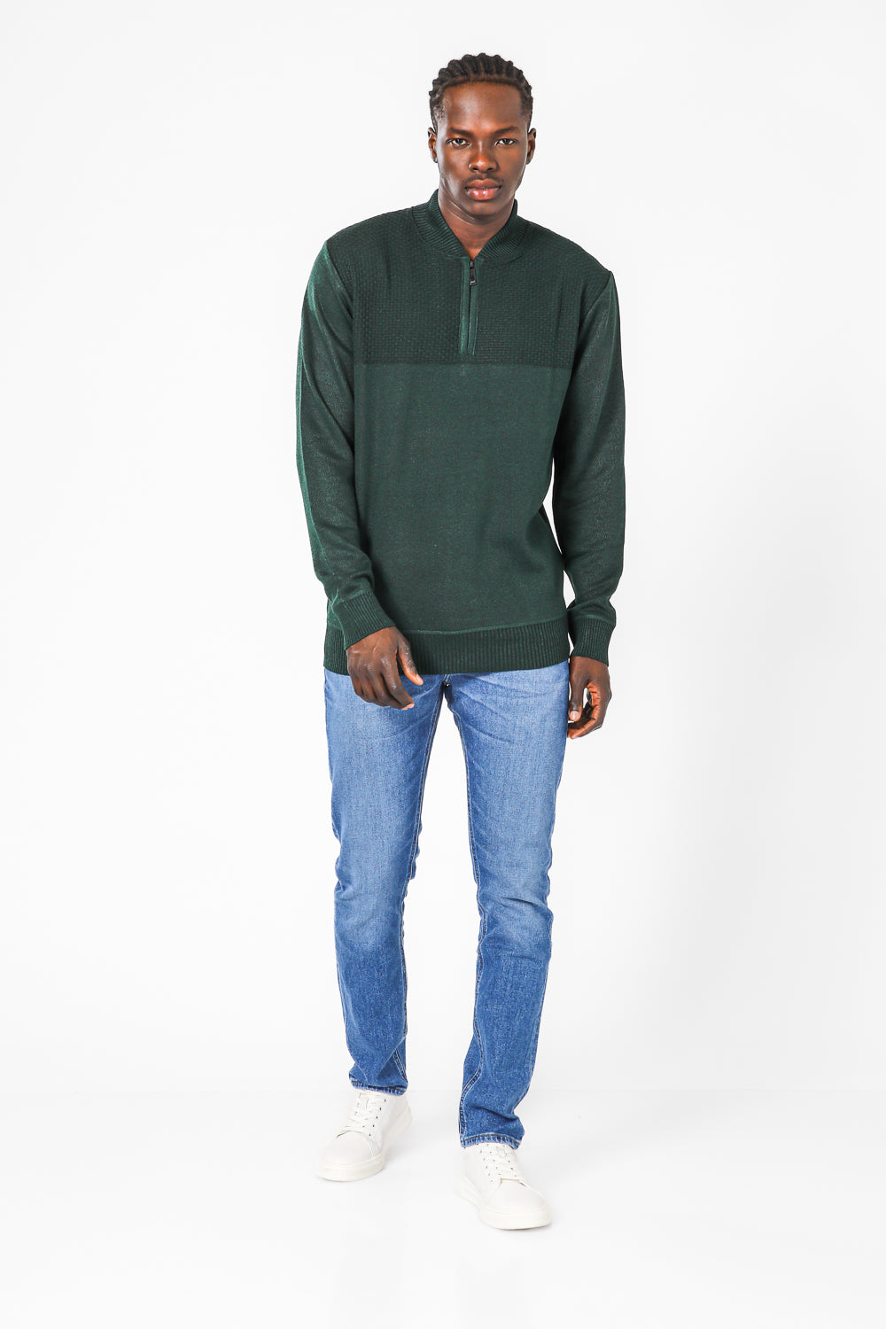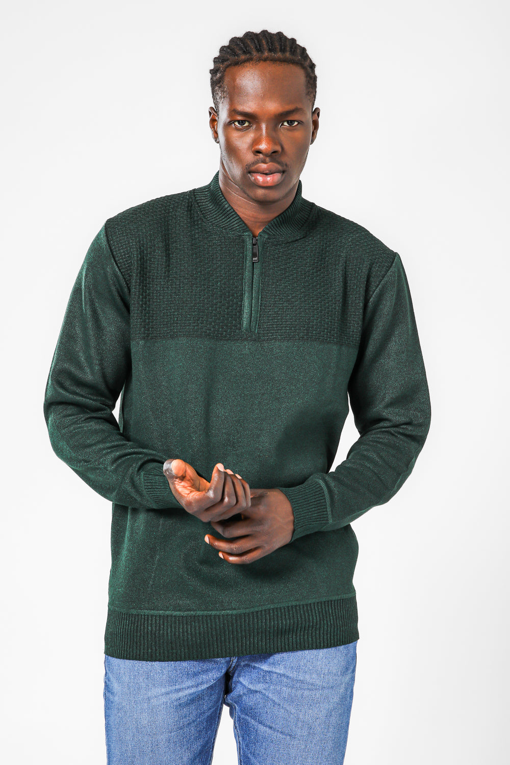 סריג עם צווארון V ורוכסן בצבע ירוק