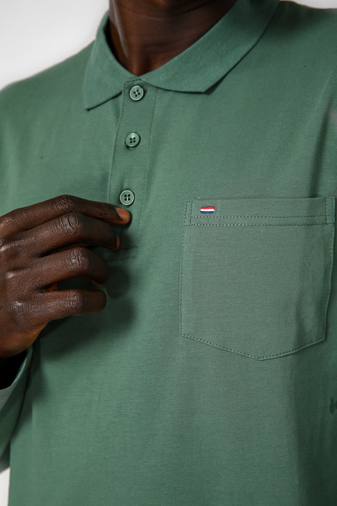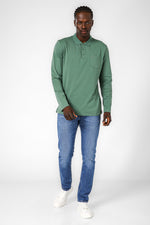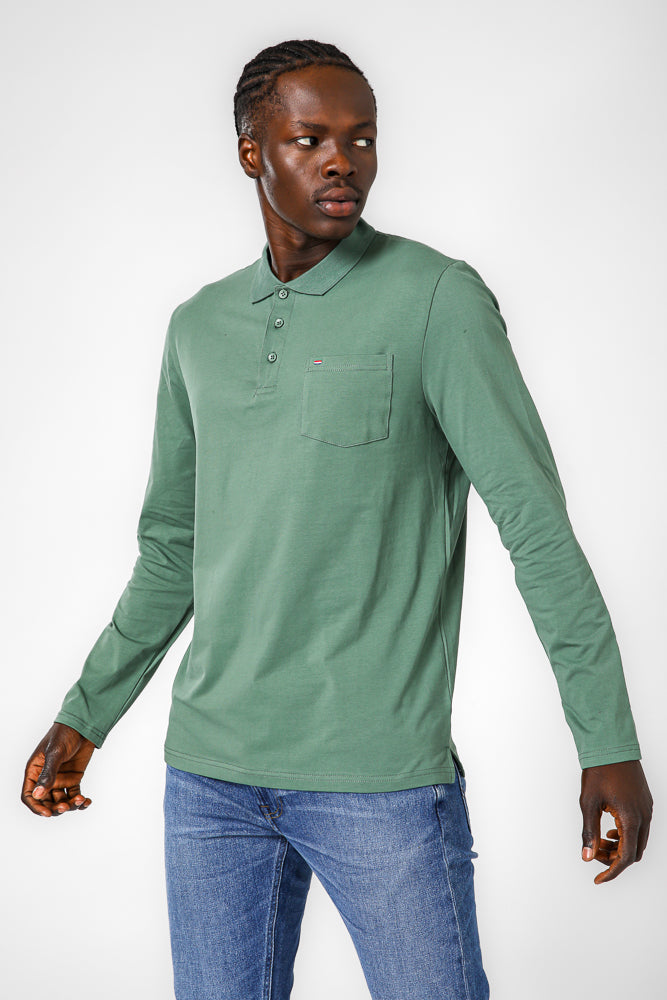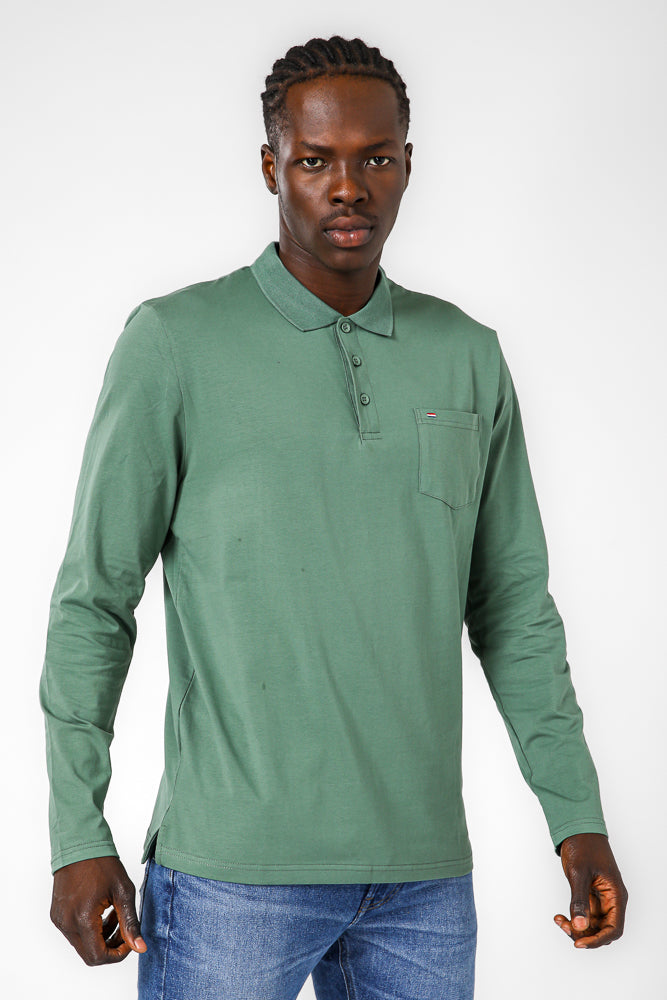 טישירט פולו מבית SCORCHER, קלאסית שמתאימה לכל לבוש, בעלת שרוולים ארוכים וצווארון מחוייט סגירת כפתורים וכיס בחזה, הרכב כותנה 95% לייקרה 5%