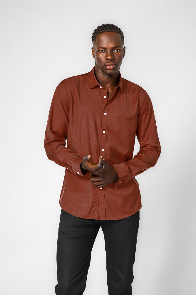 חולצה מכופתרת מבית המותג KENNETH COLE. חולצה בעלת שרוולים ארוכים וצווארון מחוייט המעניק תחושת קלאסיות בתוספת לוגו המותג על גבי החזה