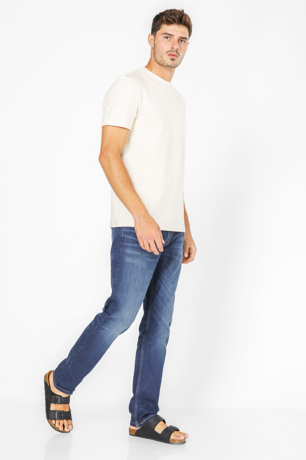 חולצת טישירט לגבר בצבע שמנת