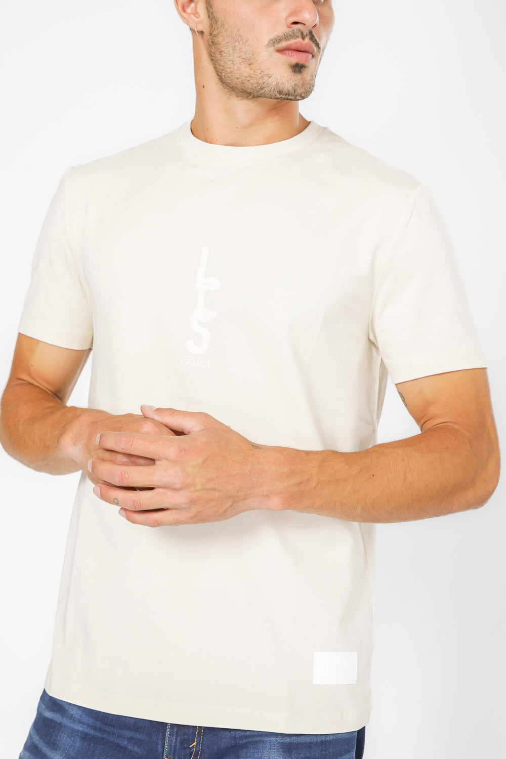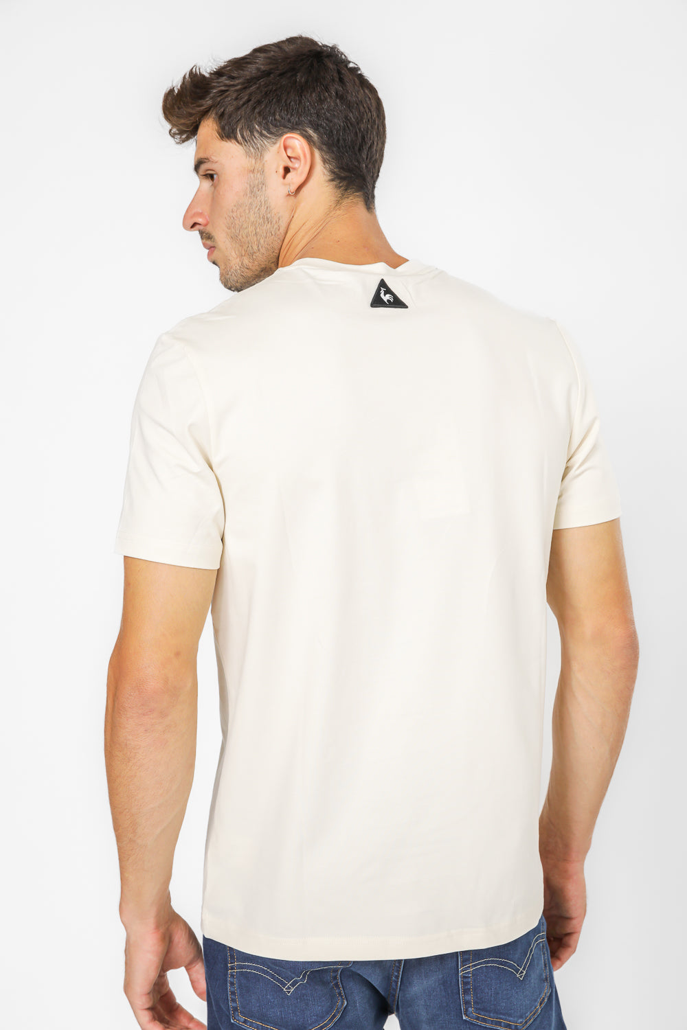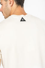 חולצת טישירט מבית המותג LA COQ SPORTIF העשויה בד לייקרה נמתח ונעים בצבע שמנת עם הדפסה לבנה בחזית.