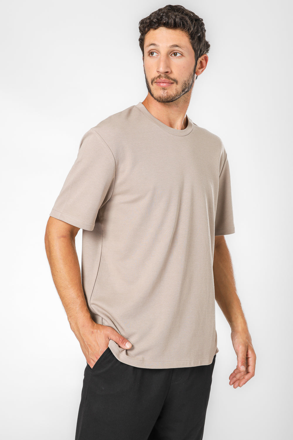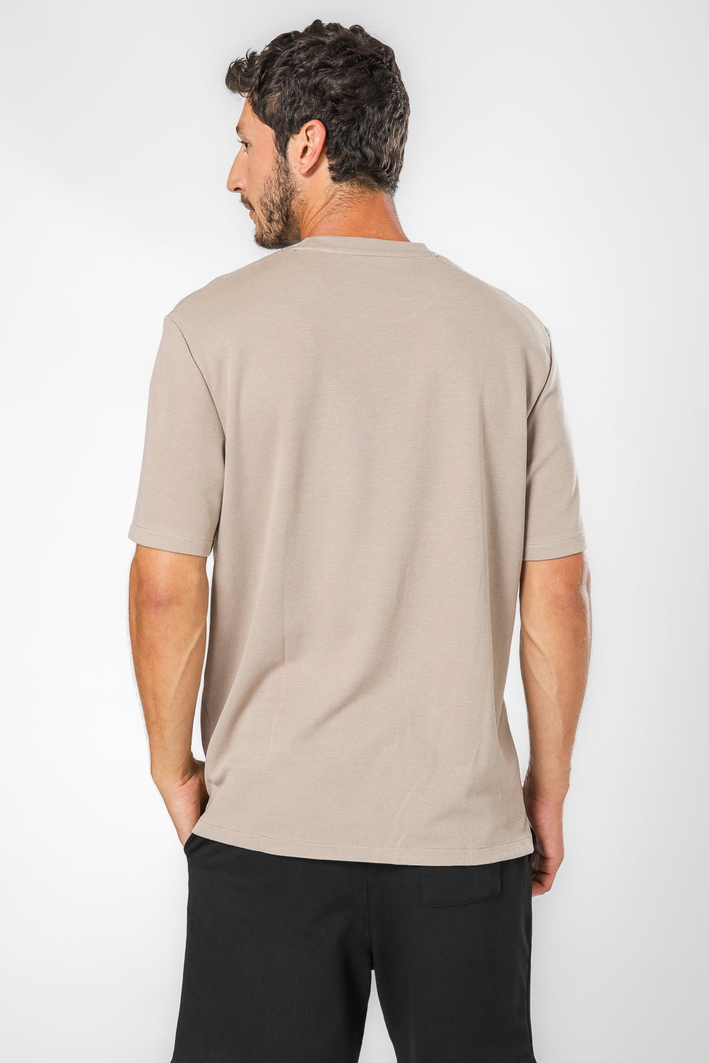חולצה קצרה בטקסטורת פסים צווארון עגול