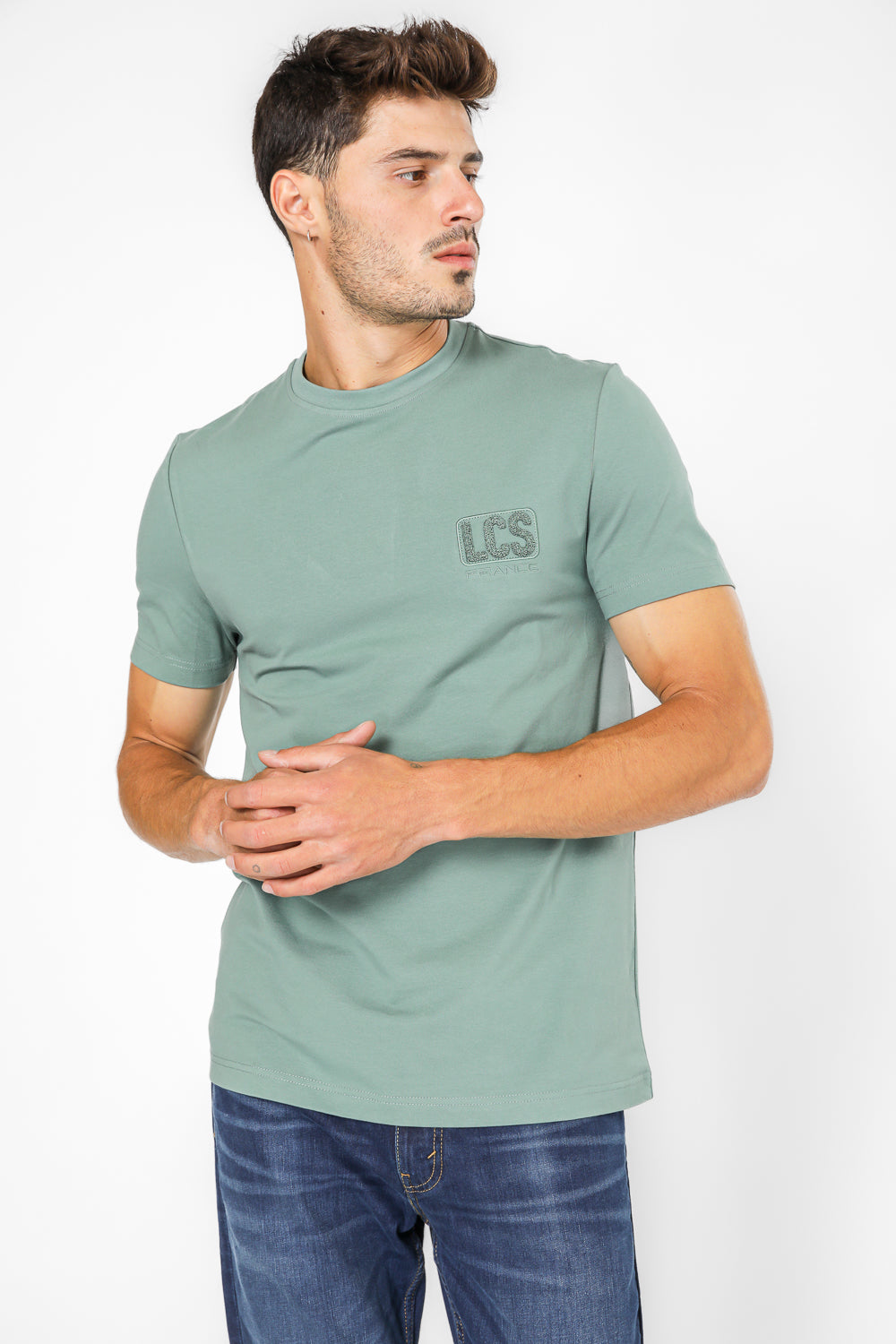 חולצת טישירט מבית המותג LA COQ SPORTIF העשויה בד לייקרה נמתח ונעים בצבע ירוק עם הדפסת לוגו המותג.