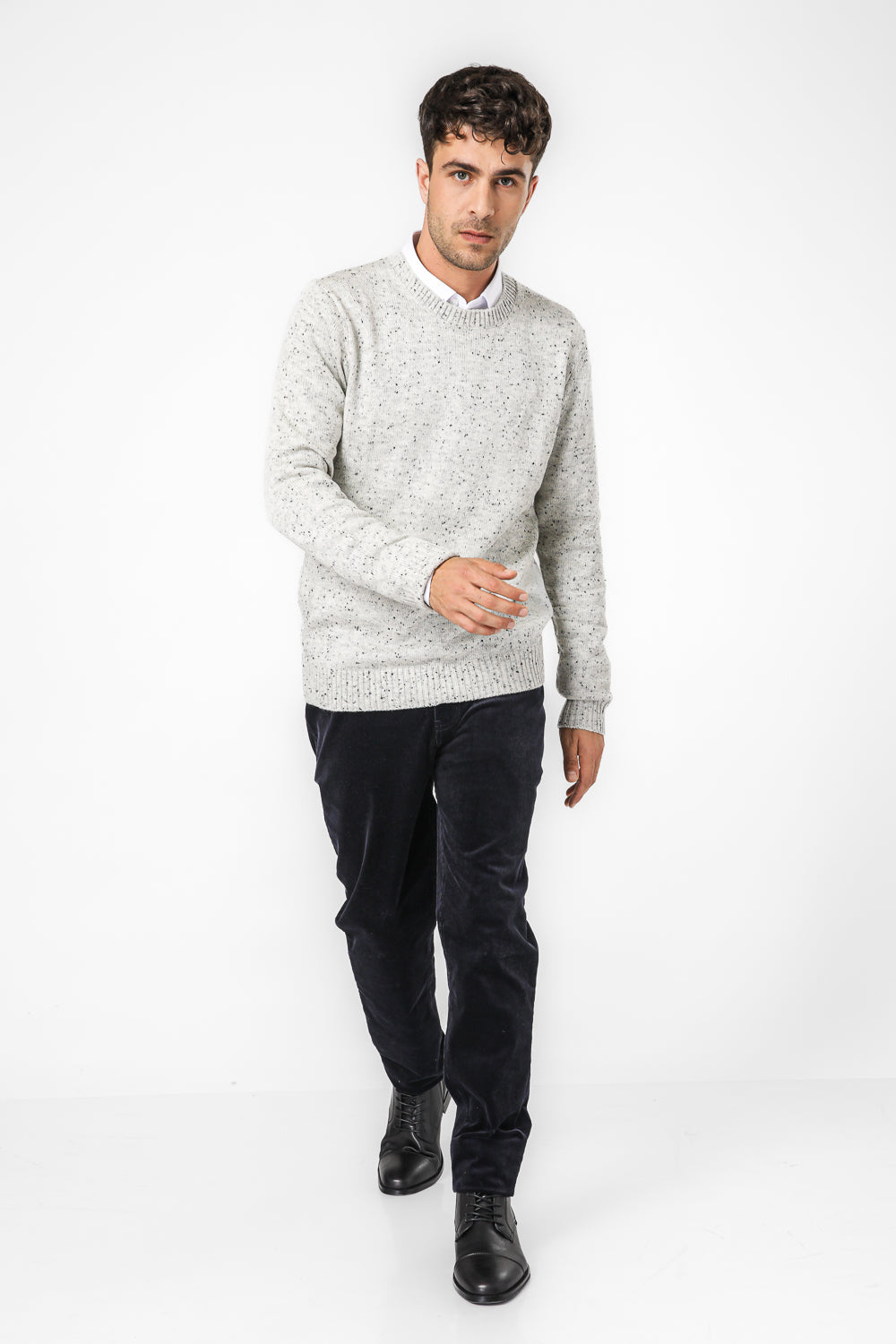סריג צווארון עגול וטקסטורה בצבע אפור