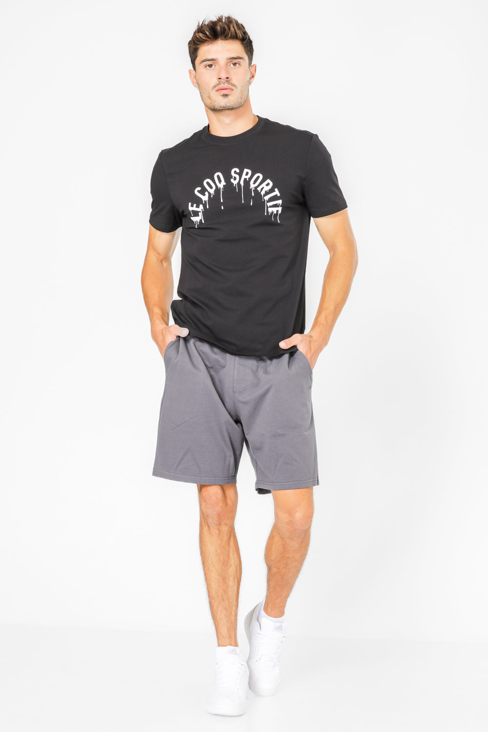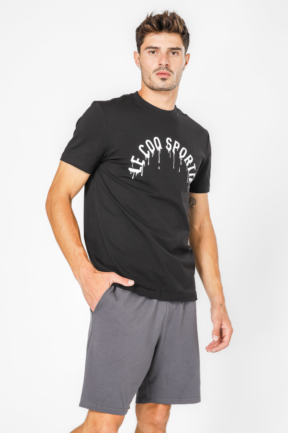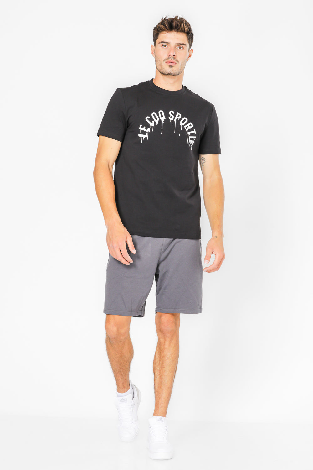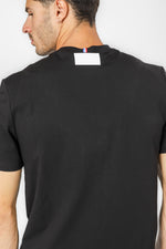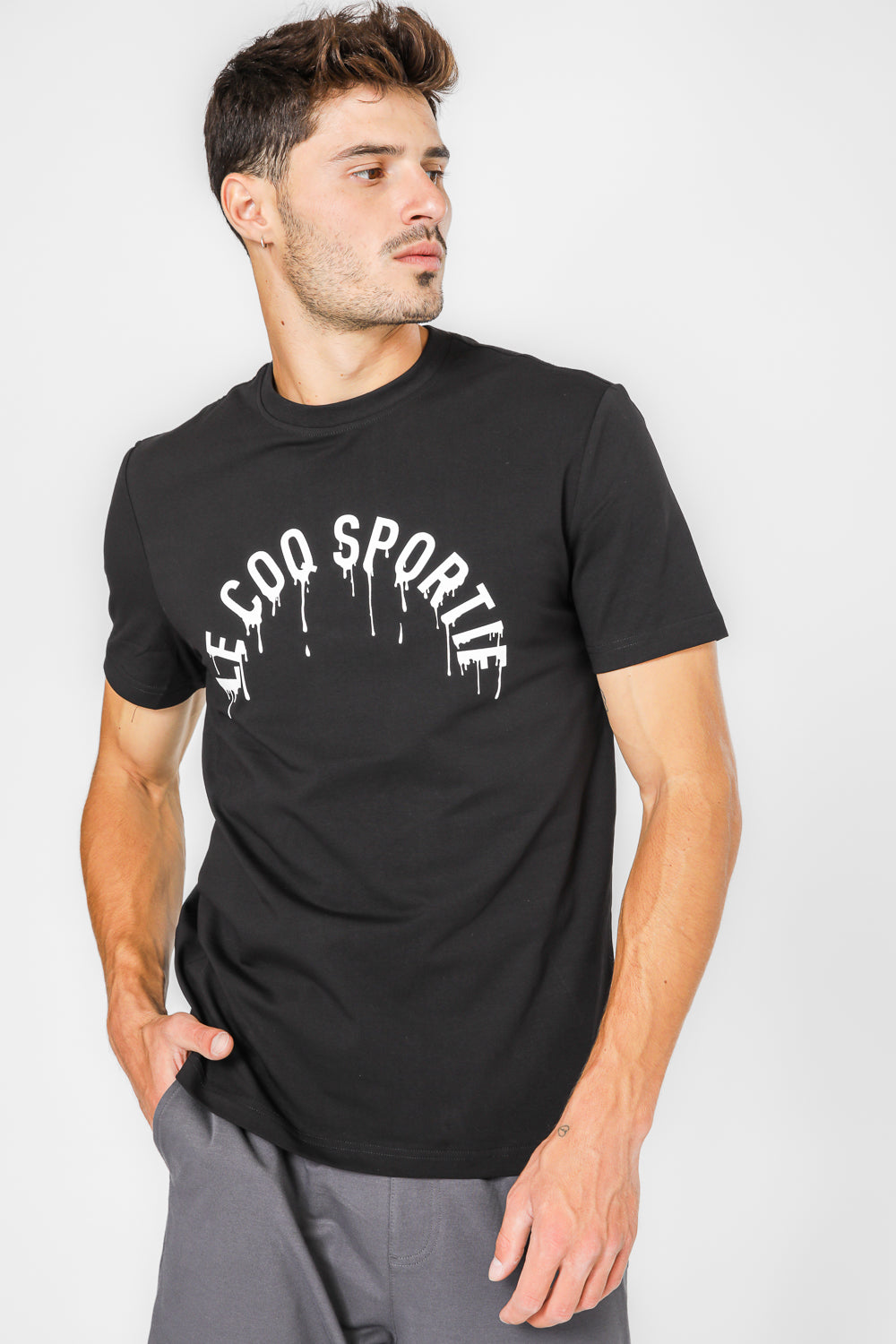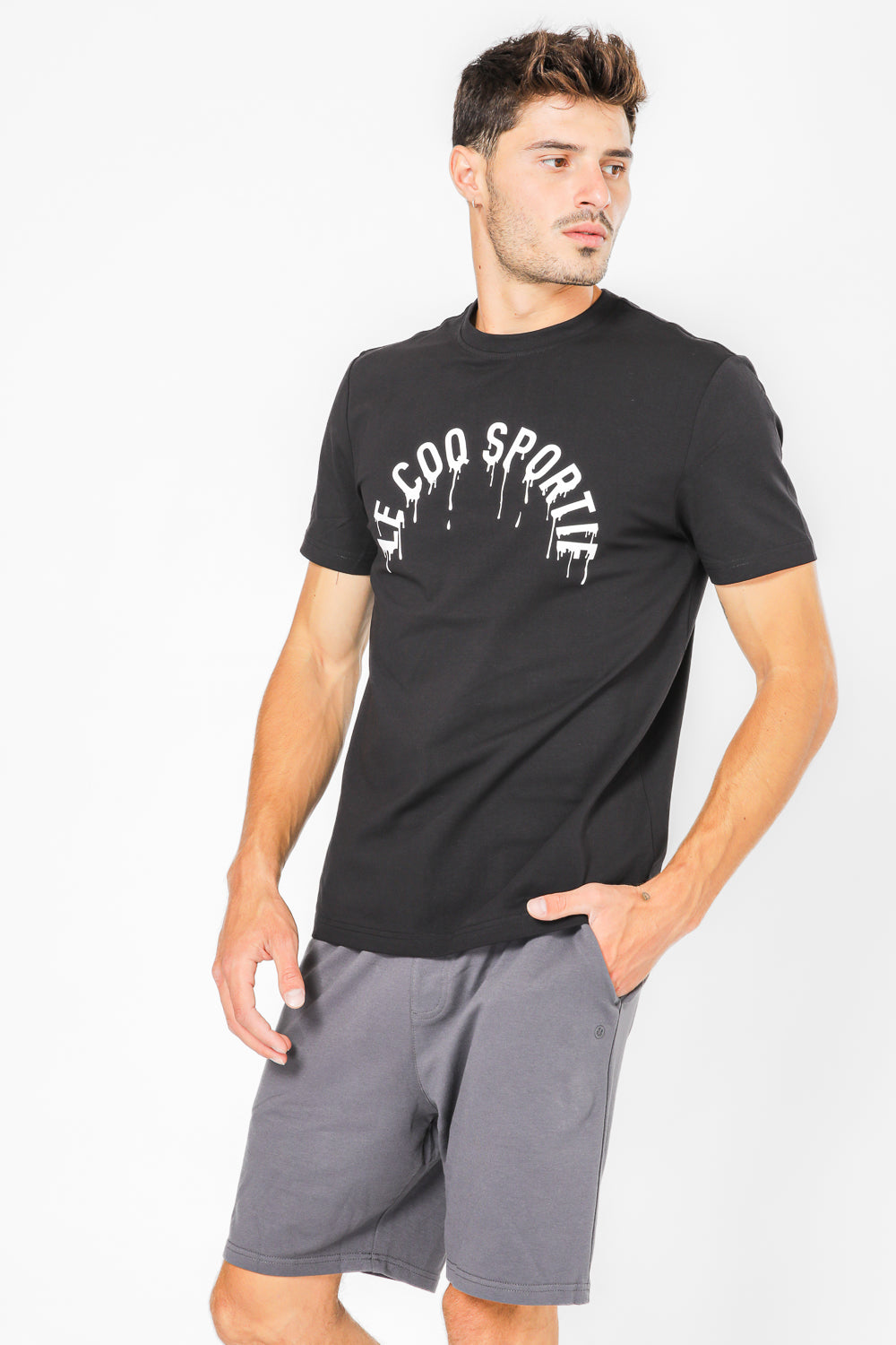 חולצת טישירט מבית המותג LA COQ SPORTIF העשויה בד לייקרה נמתח ונעים בצבע שחור עם שרוול קצר ולוגו מודפס בצבע לבן בחזית.
