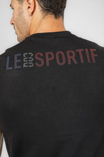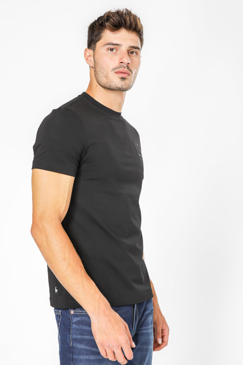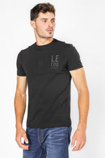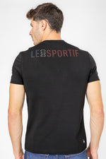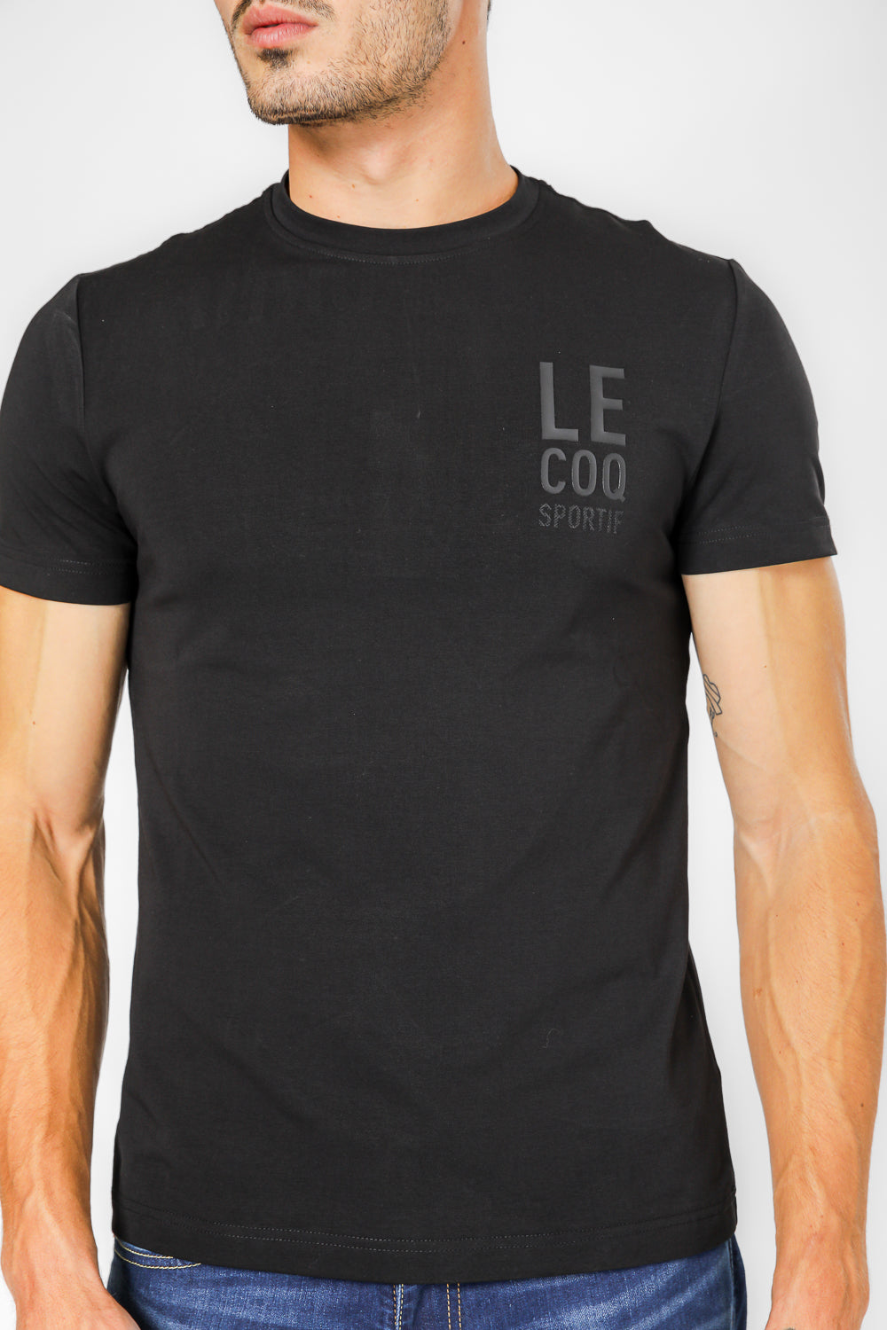 חולצת טישירט מבית המותג LA COQ SPORTIF העשויה בד לייקרה נמתח ונעים בצבע שחור עם שרוול קצר, הדפס שם המותג בגב וסמל המותג בחלקה העליון של החולצה.