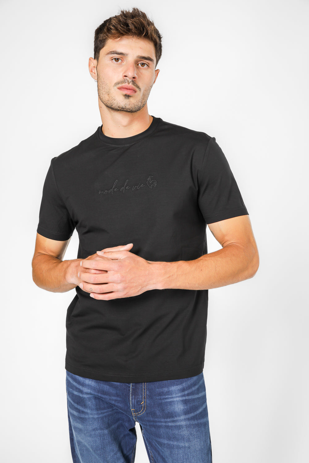 חולצת טישירט מבית המותג LA COQ SPORTIF העשויה בד לייקרה נמתח ונעים בצבע שחור.