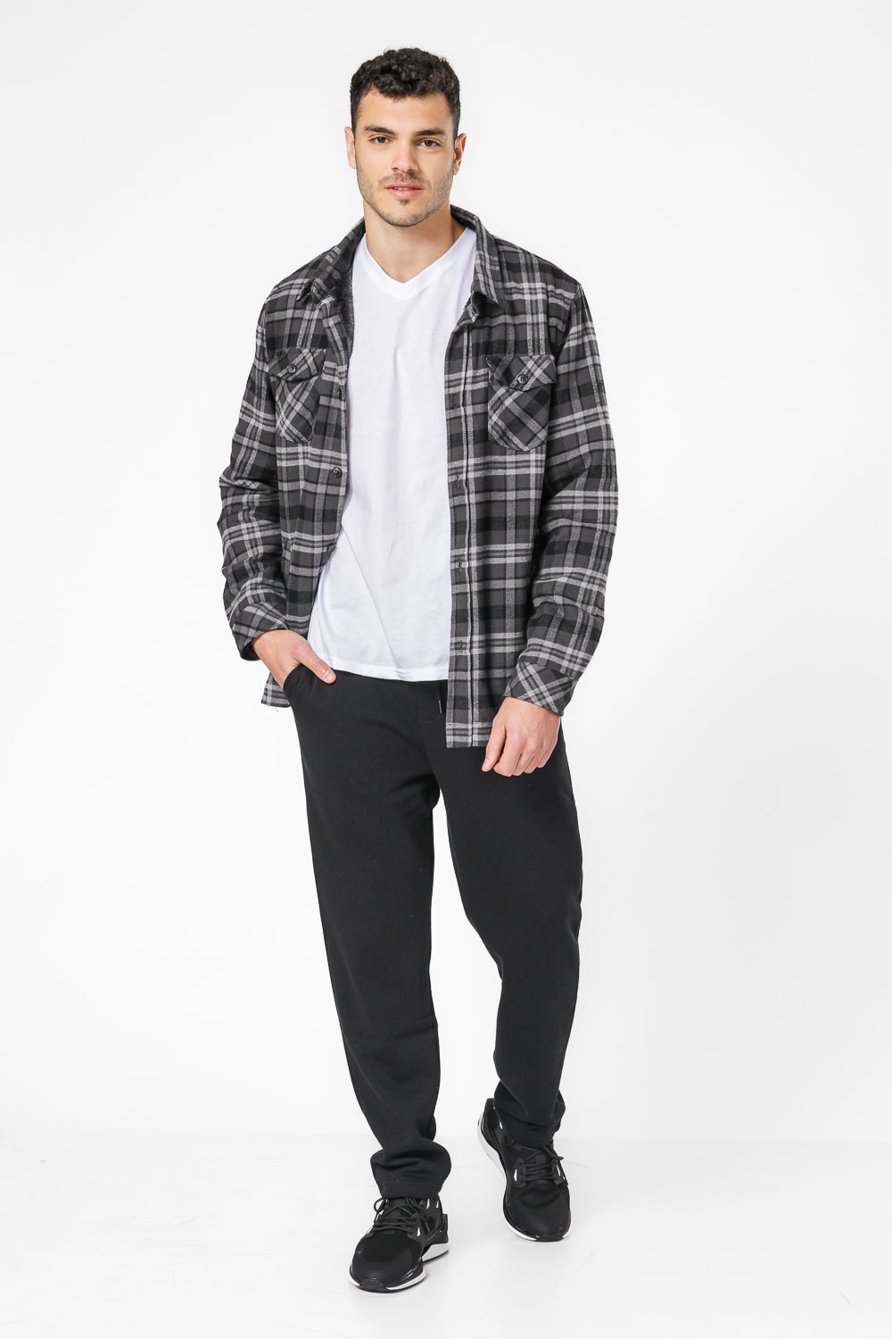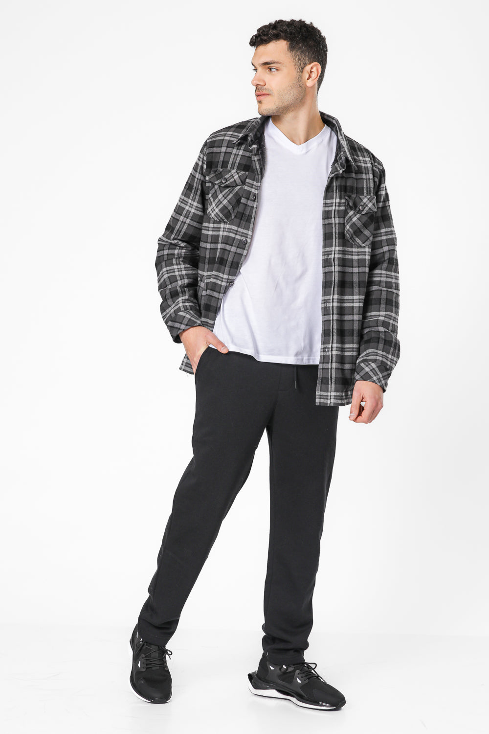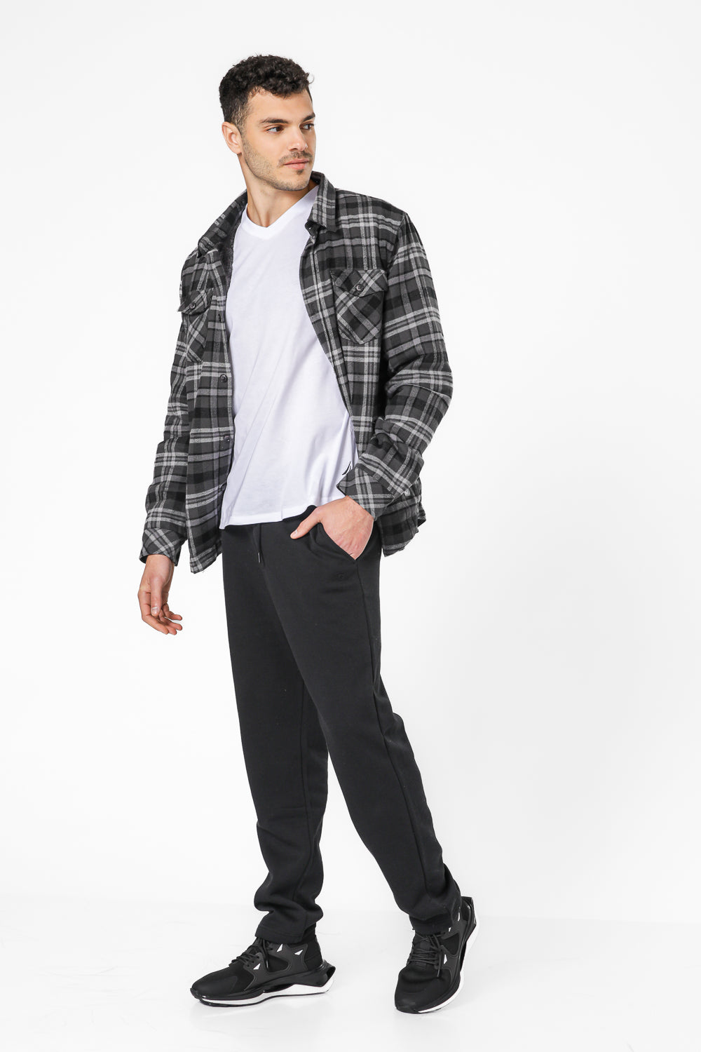 מכנסי פוטר ארוכים גזרה ישרה בצבע שחור