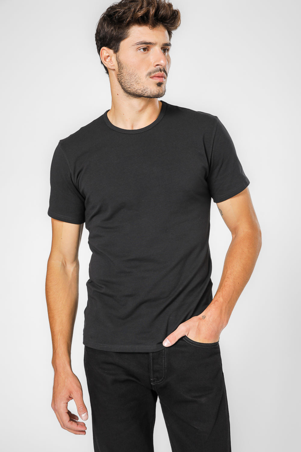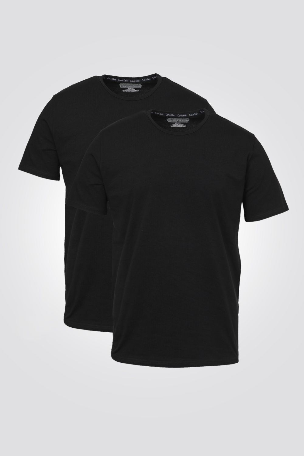 מארז חולצות טי שירט בייסיק חלקות לגבר מבית המותג Calvin Klein בצבע שחור עם מפתח צוואר עגול ושרוולים קצרים.