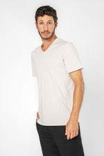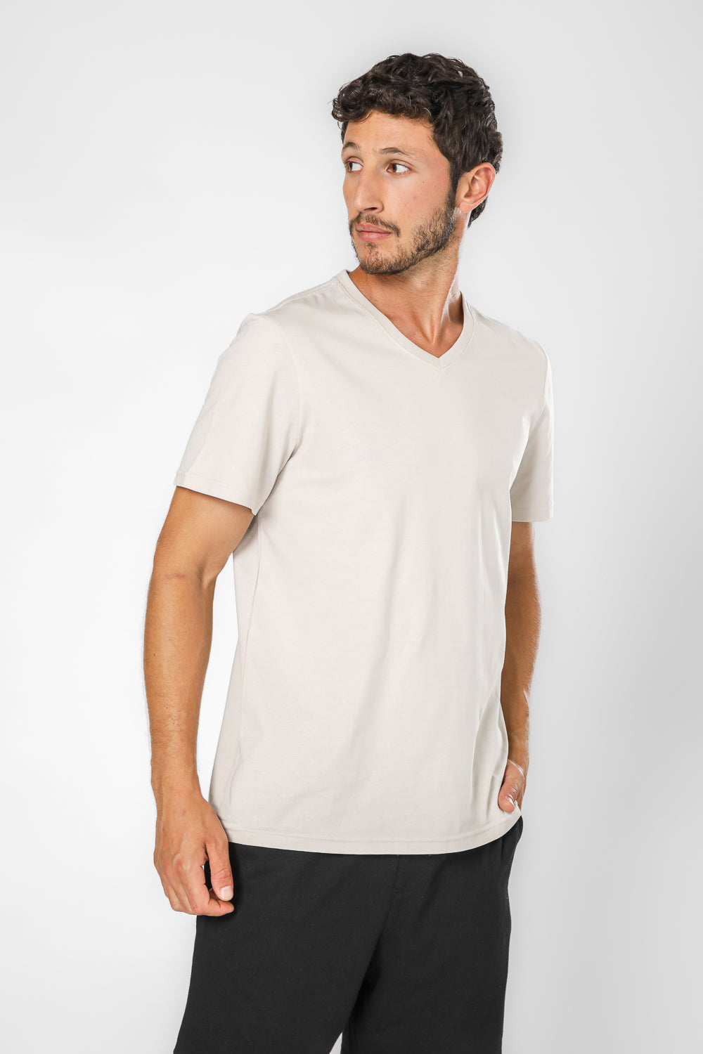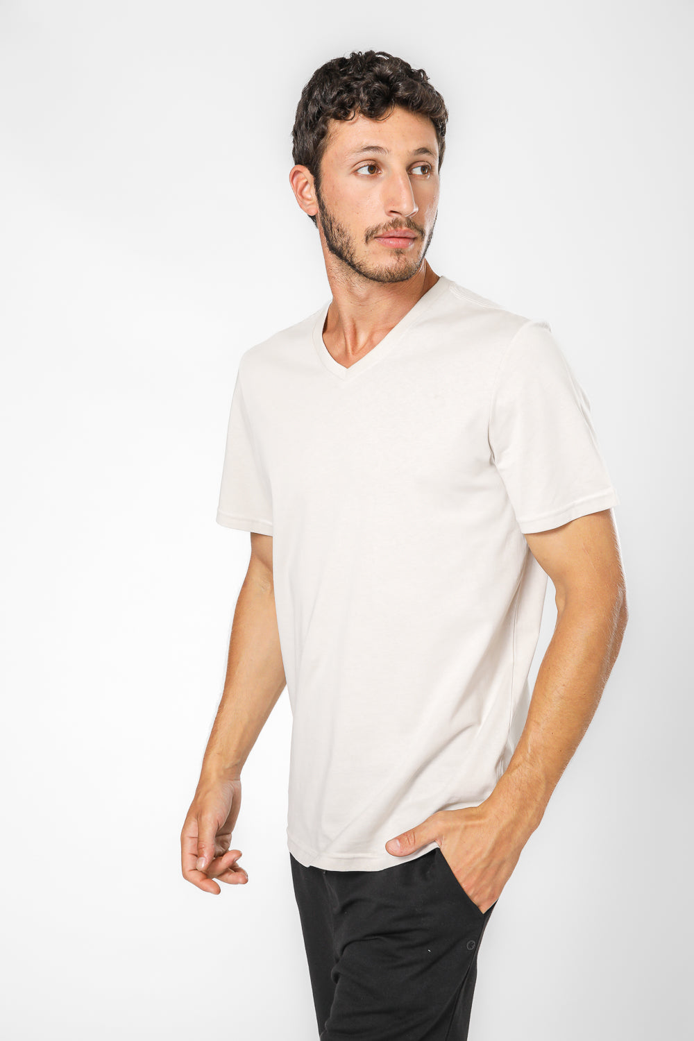 חולצת טישירט קצרה לגבר מבית המותג DELTA העשויה מבד רך ומנדף זיעה בעל צווארון V.