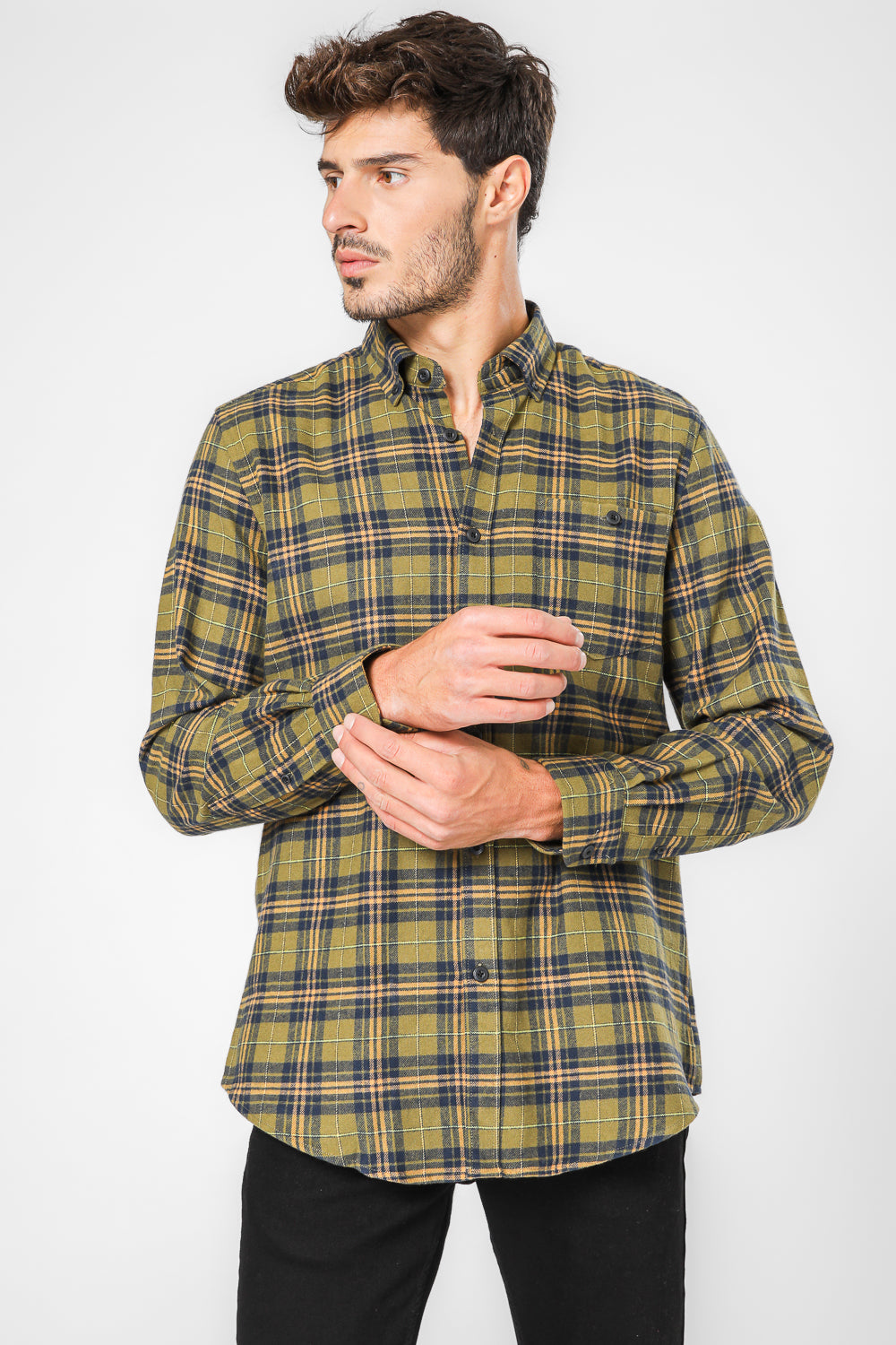 חולצת פלנל בגזרת מחמיאה, שרוול ארוך, ללא כיס, משובצת בצבעי כחול אדום אופנתיים. מגע אריג נעים ונושם.
