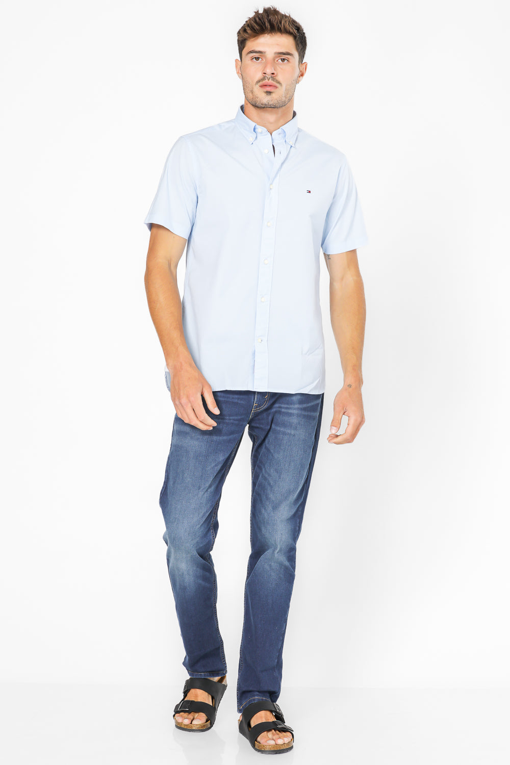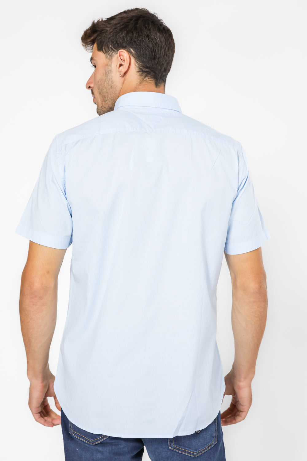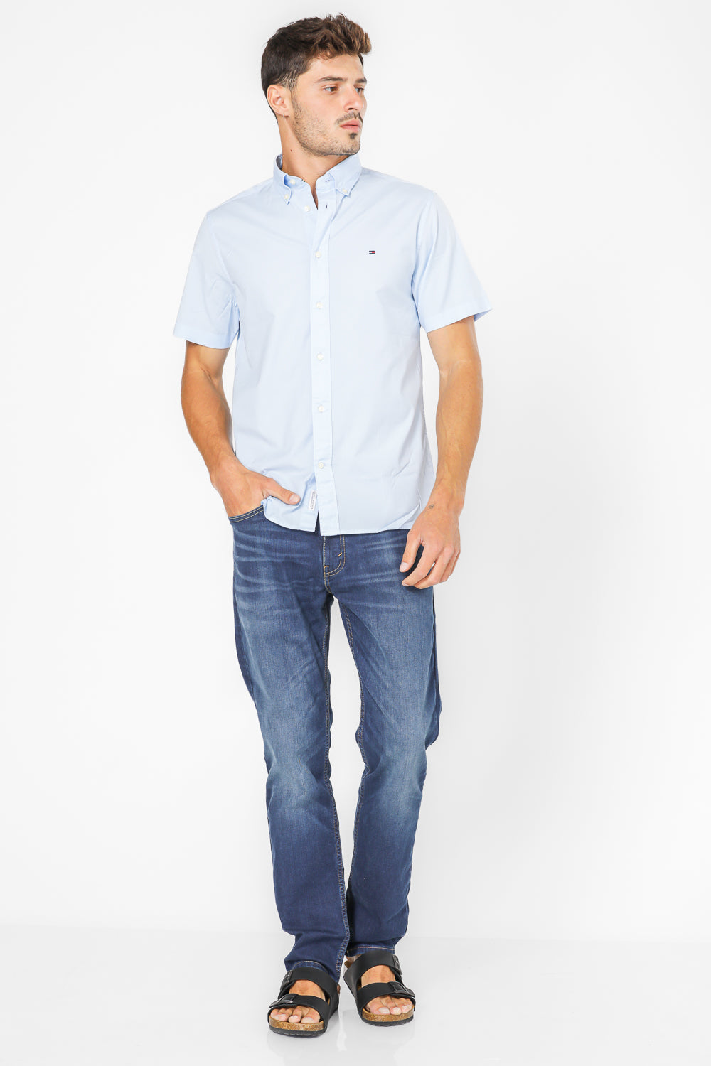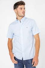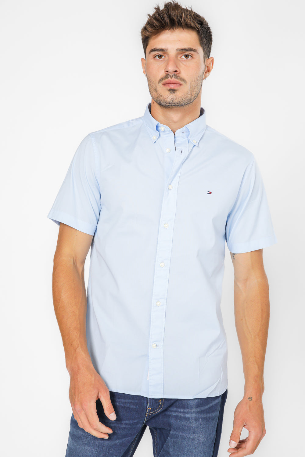 חולצה מכופתרת קצרה לגברים מבית המותג Tommy Hilfiger, בצבע תכלת , עם צווארון קלאסי וסגירת כפתורים.