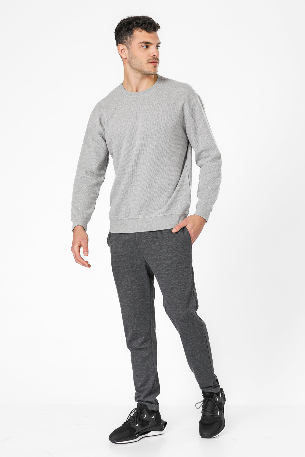 חולצה ארוכה מבד וופל בצבע אפור בהיר