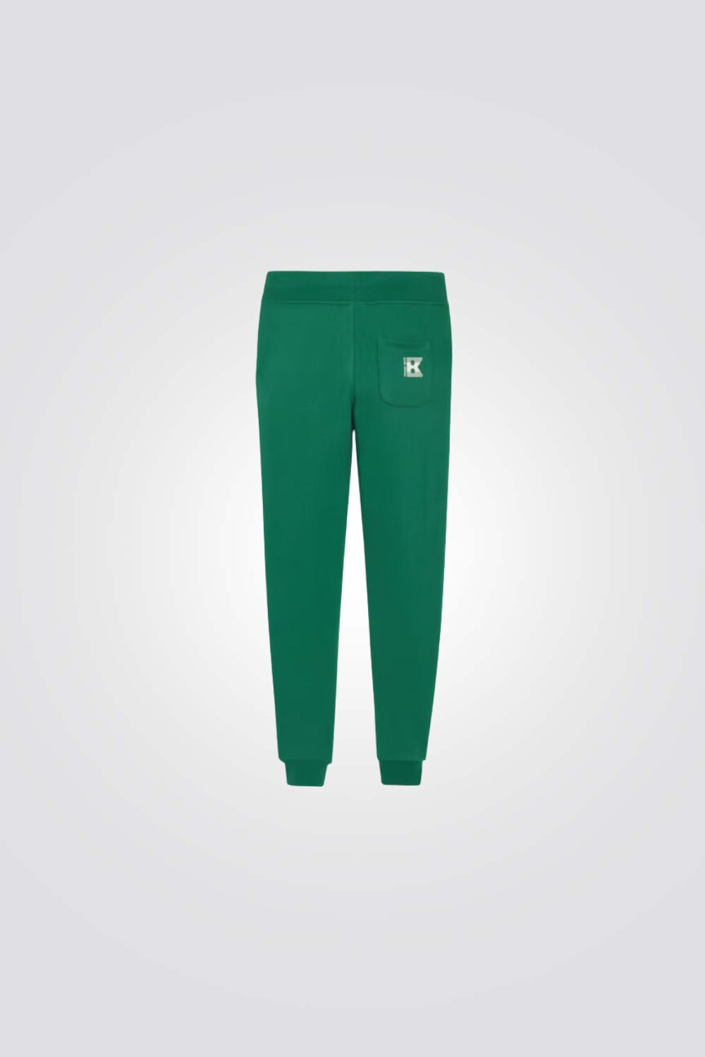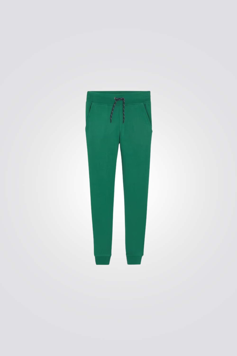 מכנסי טרנינג לילדים מבית המותג OKAIDI,בצבע ירוק, רכים ונעימים עם סיומת גומי ומותן אלסטית עם שרוך קשירה, ושני כיסים צדדיים.