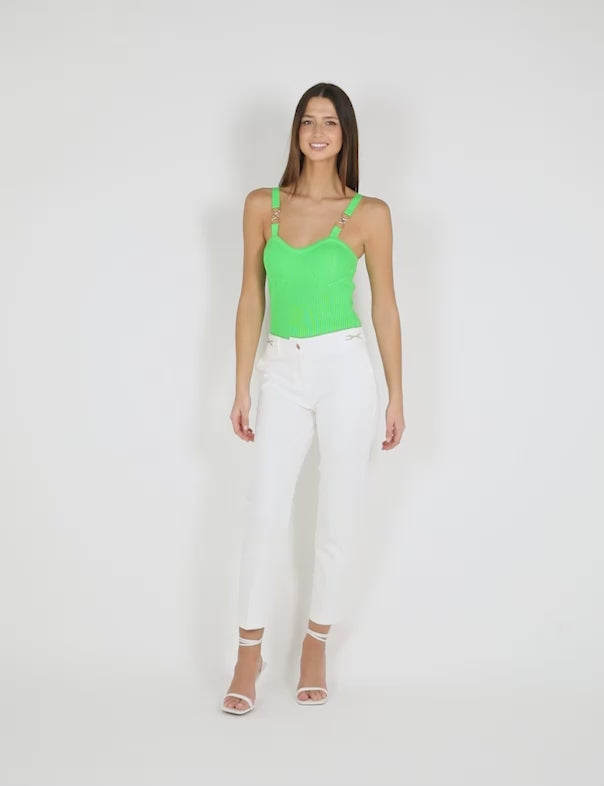 גופיית סריג עם רצועות רחבות בצבע ירוק