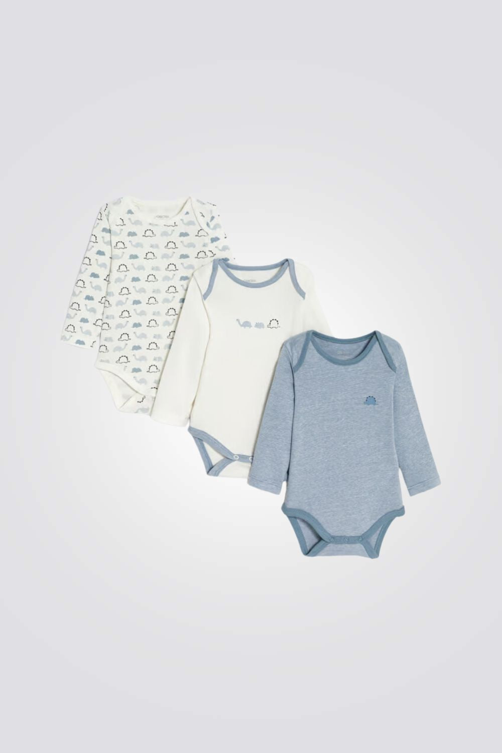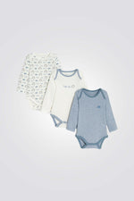סט 3 בגדי גוף לתינוקות בצבע כחול ולבן