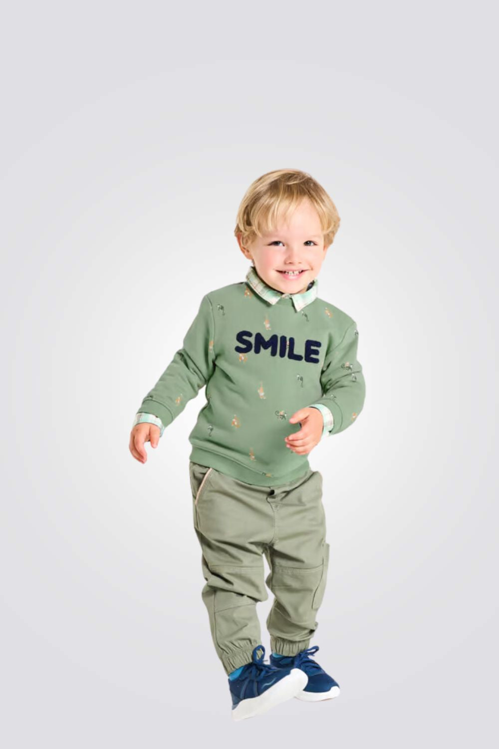 סווטשירט לתינוקות בצבע ירוק עם הדפס קופים
