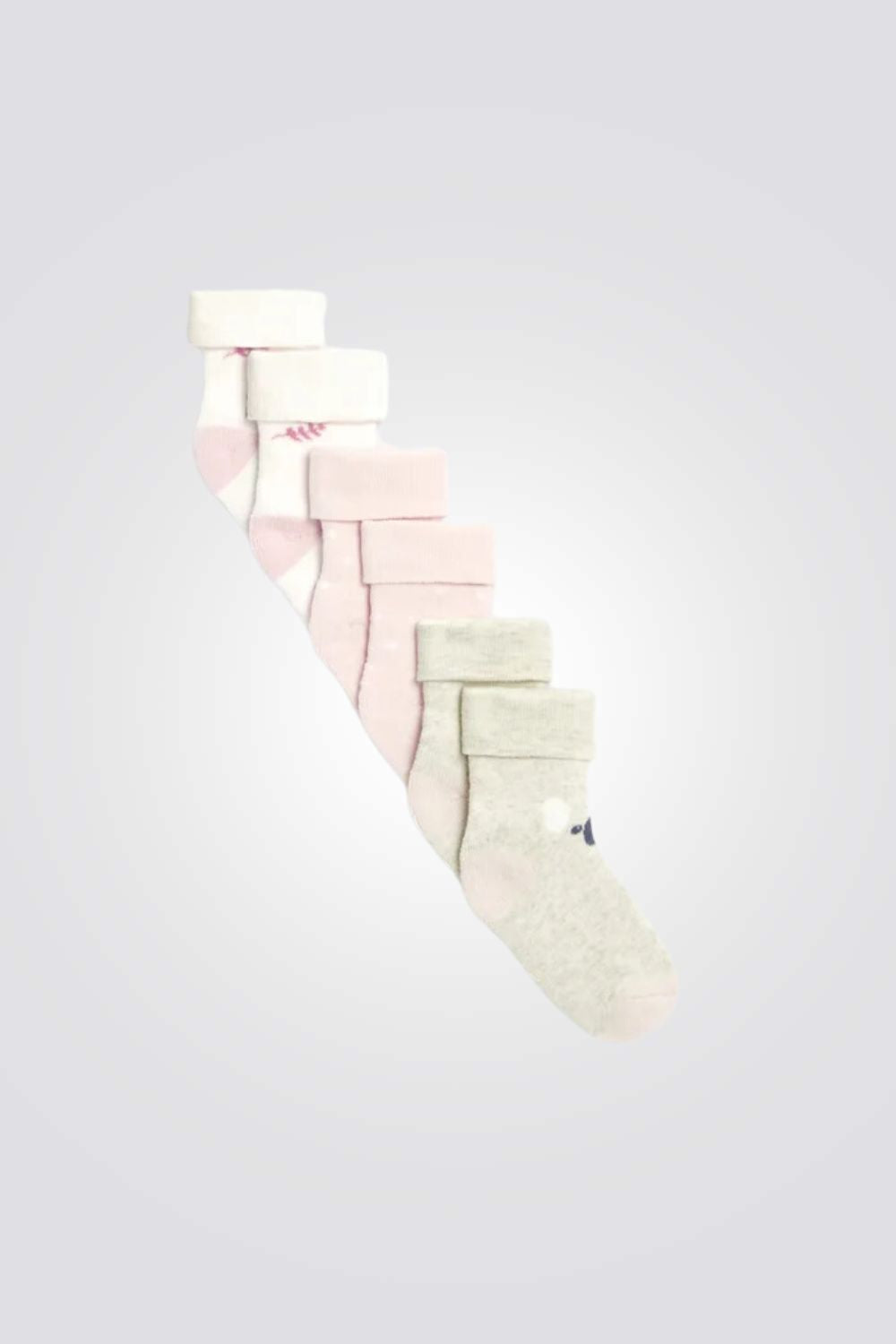 מארז 3 זוגות גרביים לתינוקות בגווני ורוד לבן ובז'