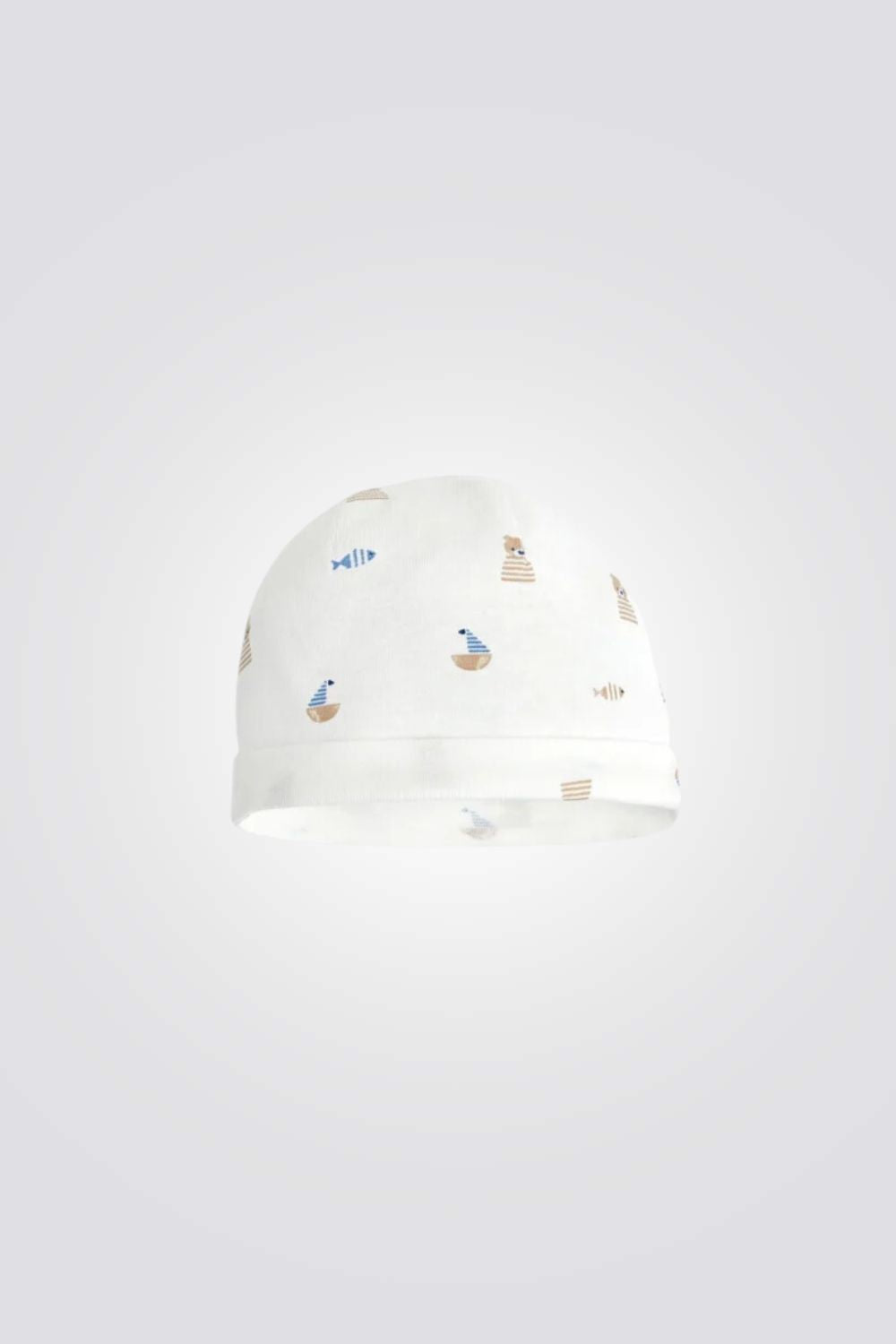 כובע לתינוקות בצבע לבן עם הדפס חיות