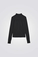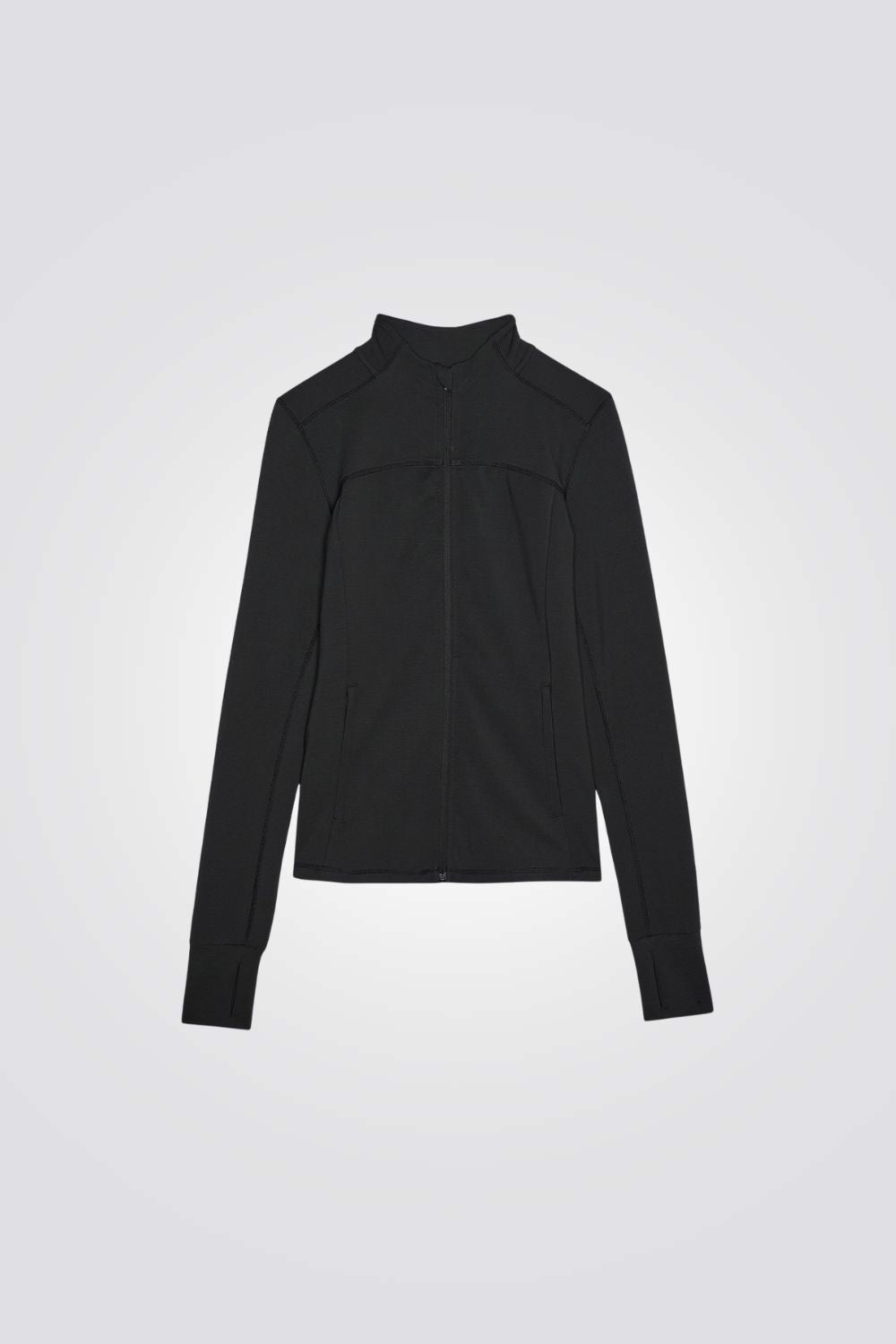 סווטשירט לנשים מבית המותג F4, בצבע שחור ,נוח ומתאים לאימונים, עם צווארון גבוהה , סגירת רוכסן ושני כיסים צדדיים.