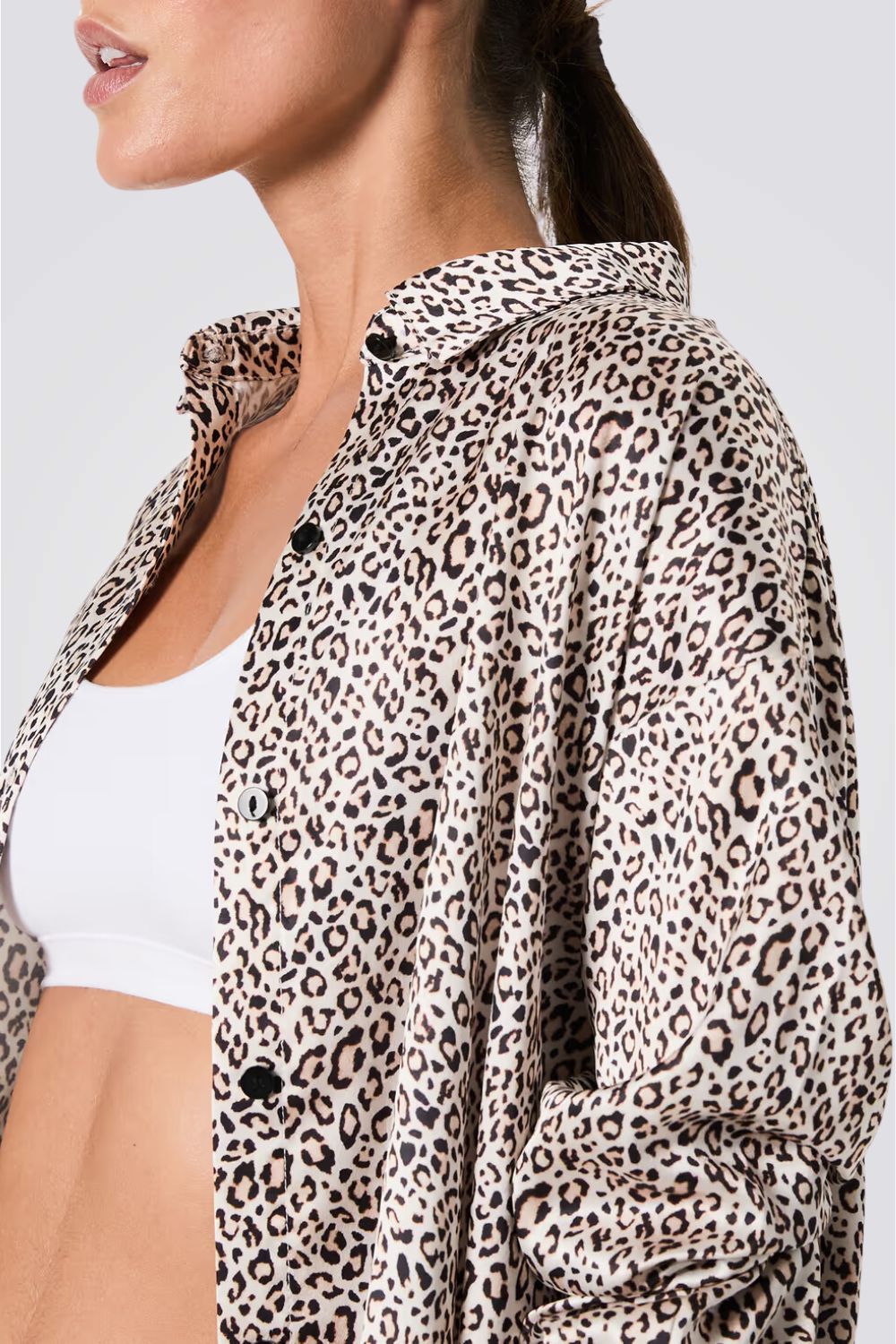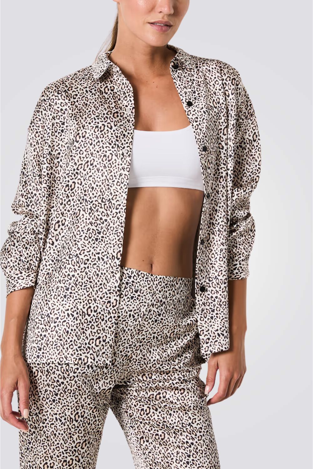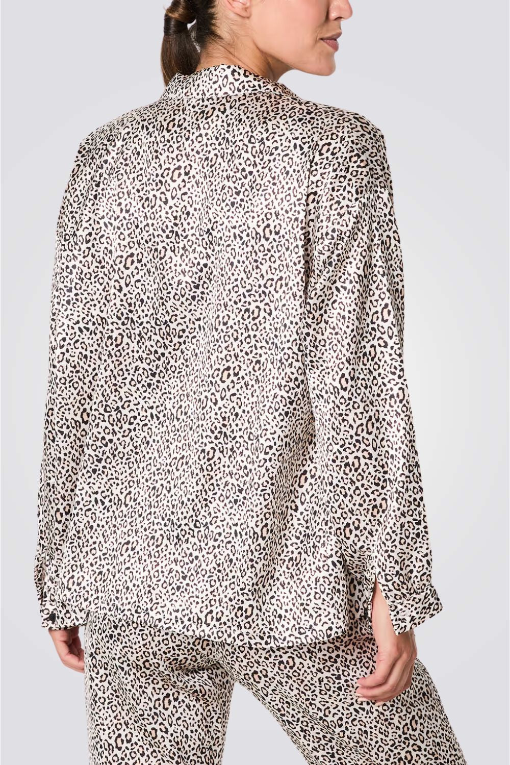 חולצת פיג'מה מכופתרת מבית המותג ETAM בעלת שרוולים ארוכים, צווארון דש ובהדפס מנומר.