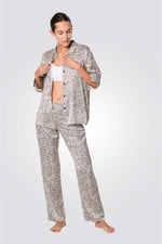חולצת פיג'מה ארוכה BEO בהדפס מנומר אפור