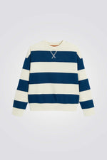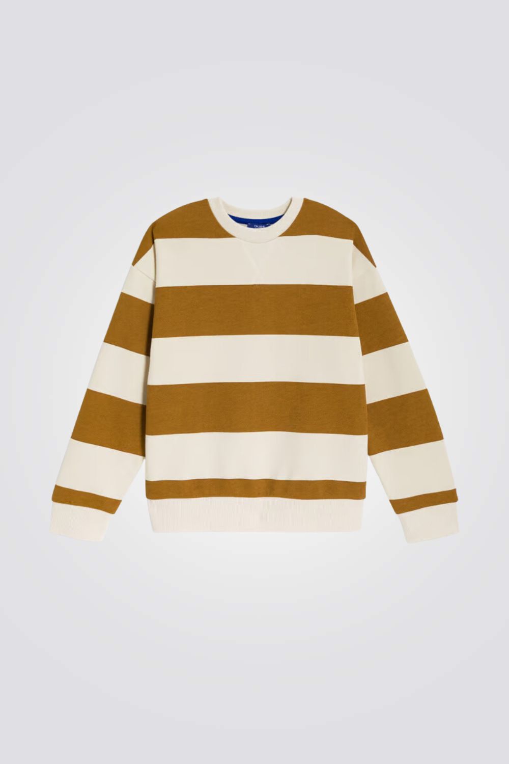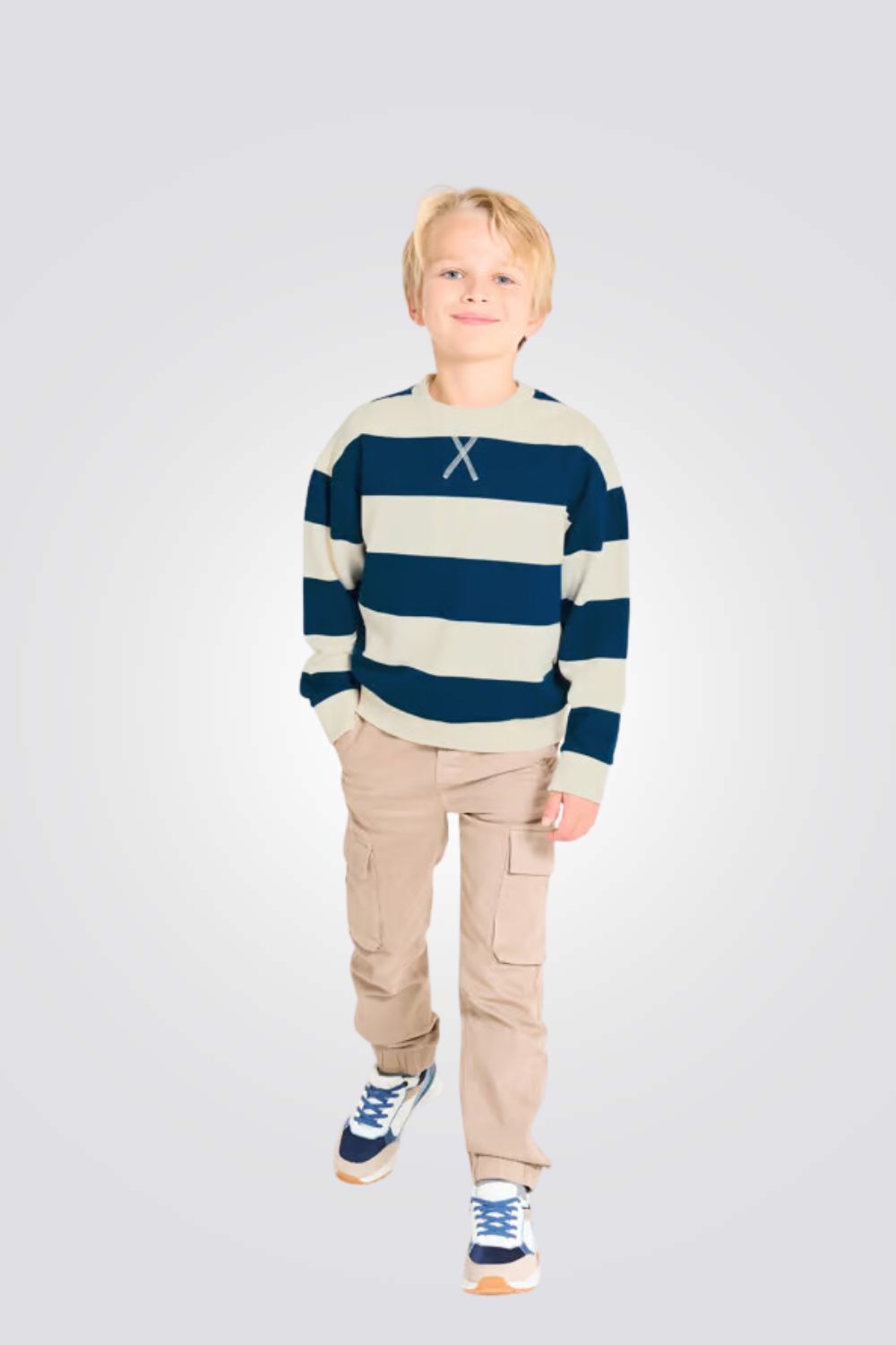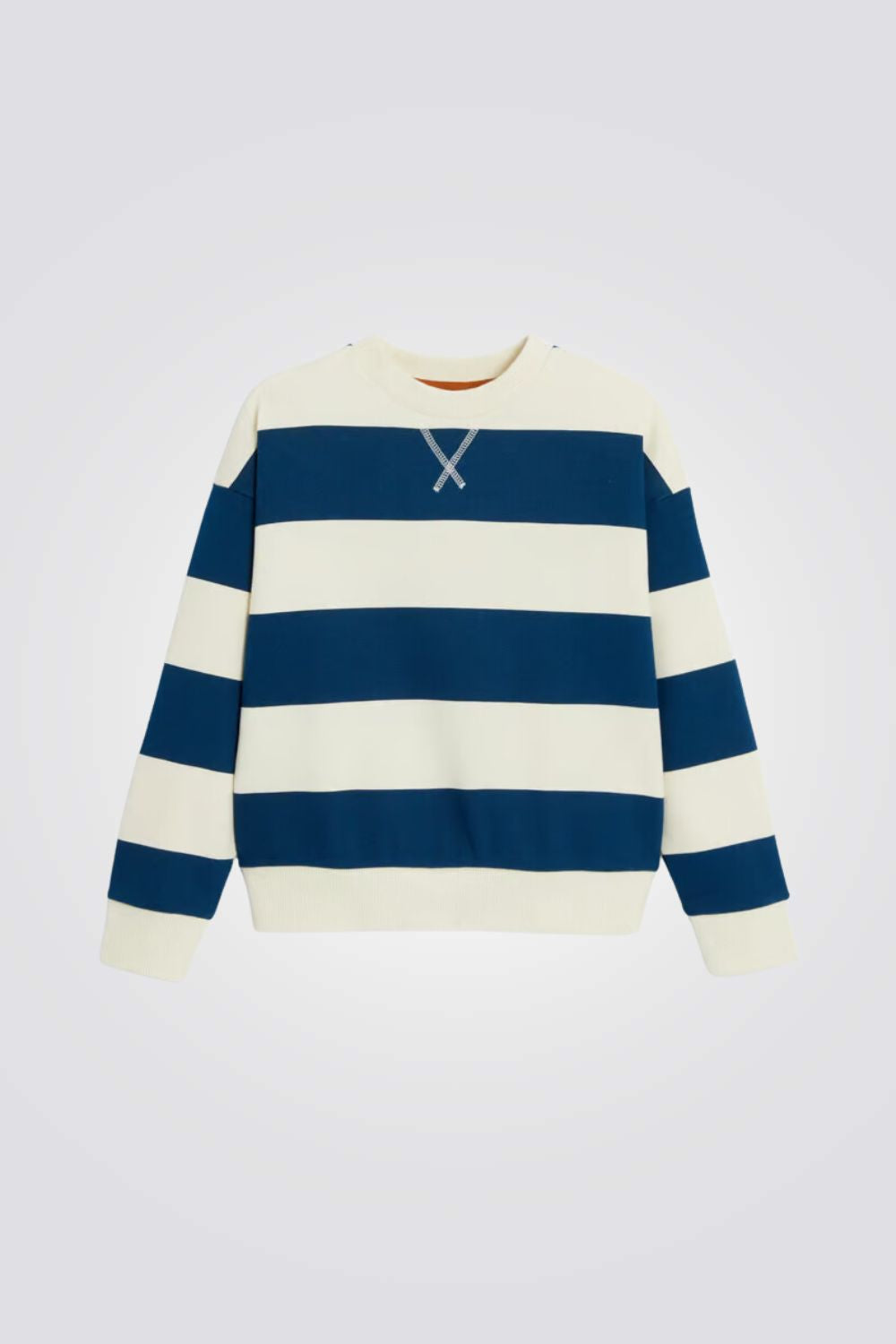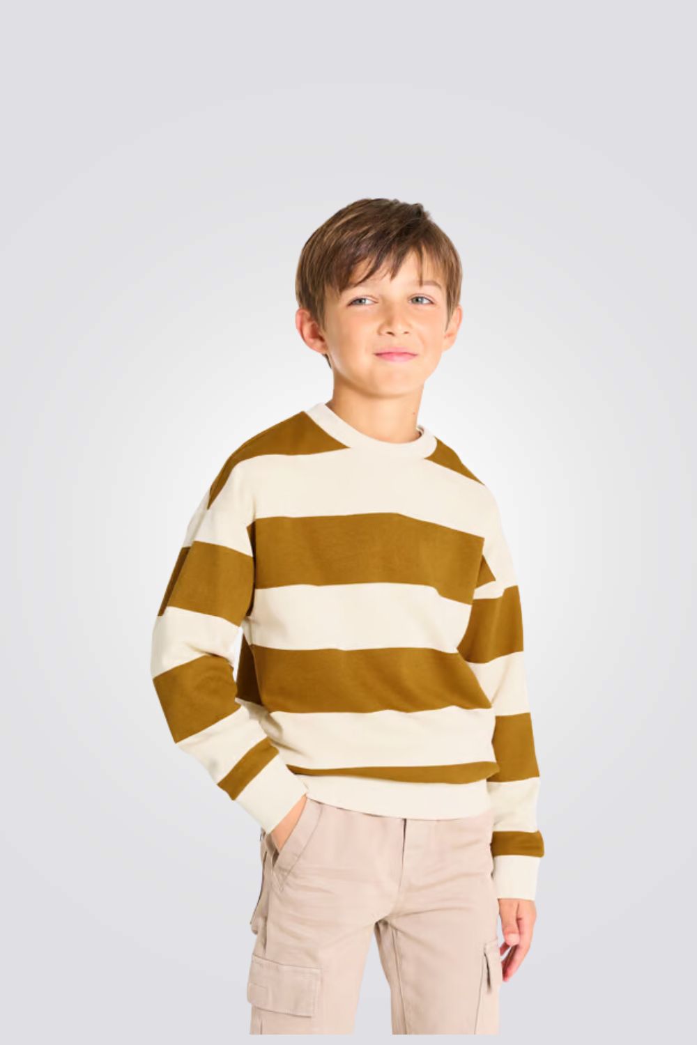 סווטשירט לילדים מבית המותג OKAIDI, מחמם ונעים עם הדפסי פסים, שרוולים ארוכים וצווארון עגול.