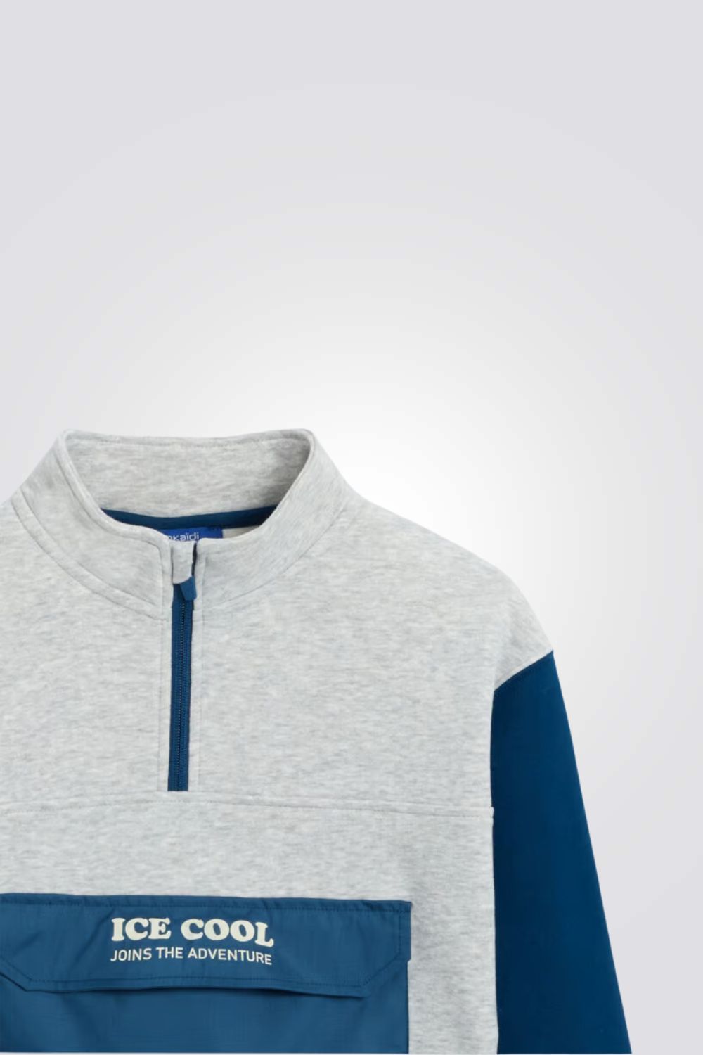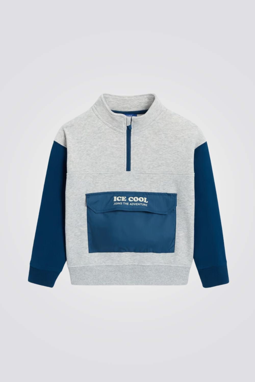סווטשירט לילדים עם צווארון גבוהה בצבע כחול ואפור