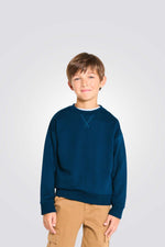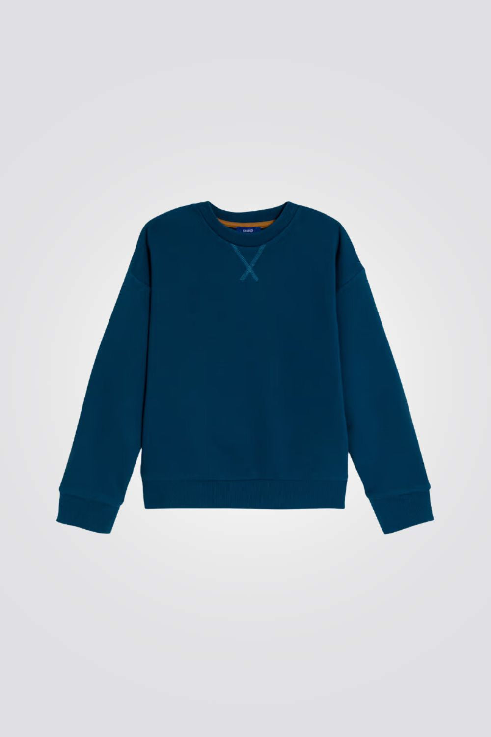 סווטשירט לילדים מבית המותג OKAIDI, בצבע כחול כהה , מחמם ונעים , עם שרוולים ארוכים וצווארון עגול.