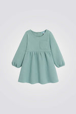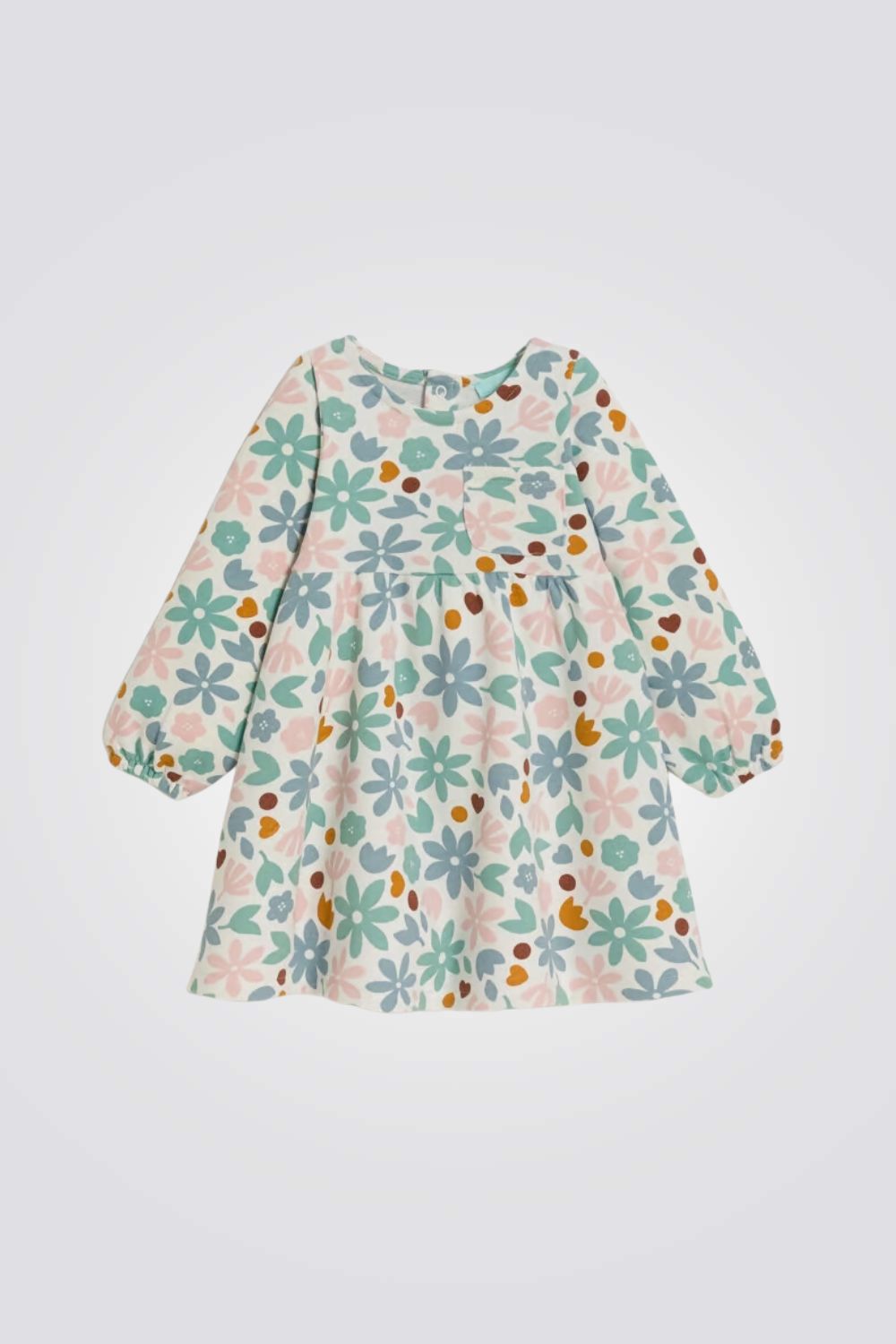שמלה לתינוקות מבית המותג OBAIBI, קלילה ונוחה בגזרה רחבה מתאימה ליום יום, שרוולים ארוכים וסגירה מאחורה.