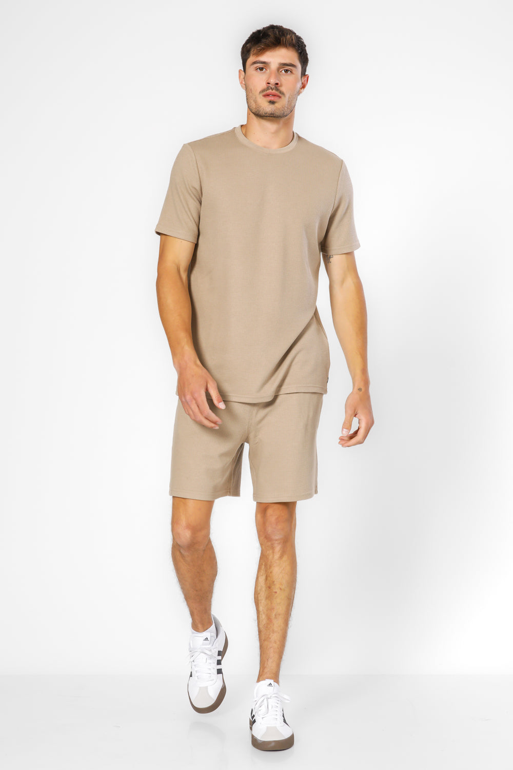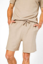 סט פיג’מה קצרה מבד וופל BAMBOO בז'