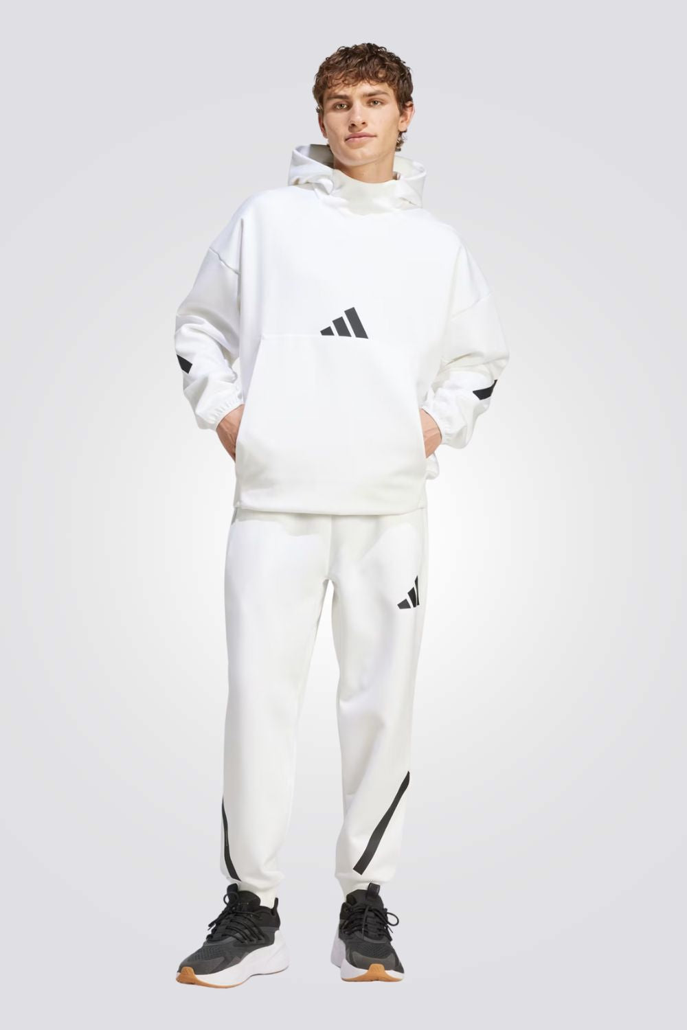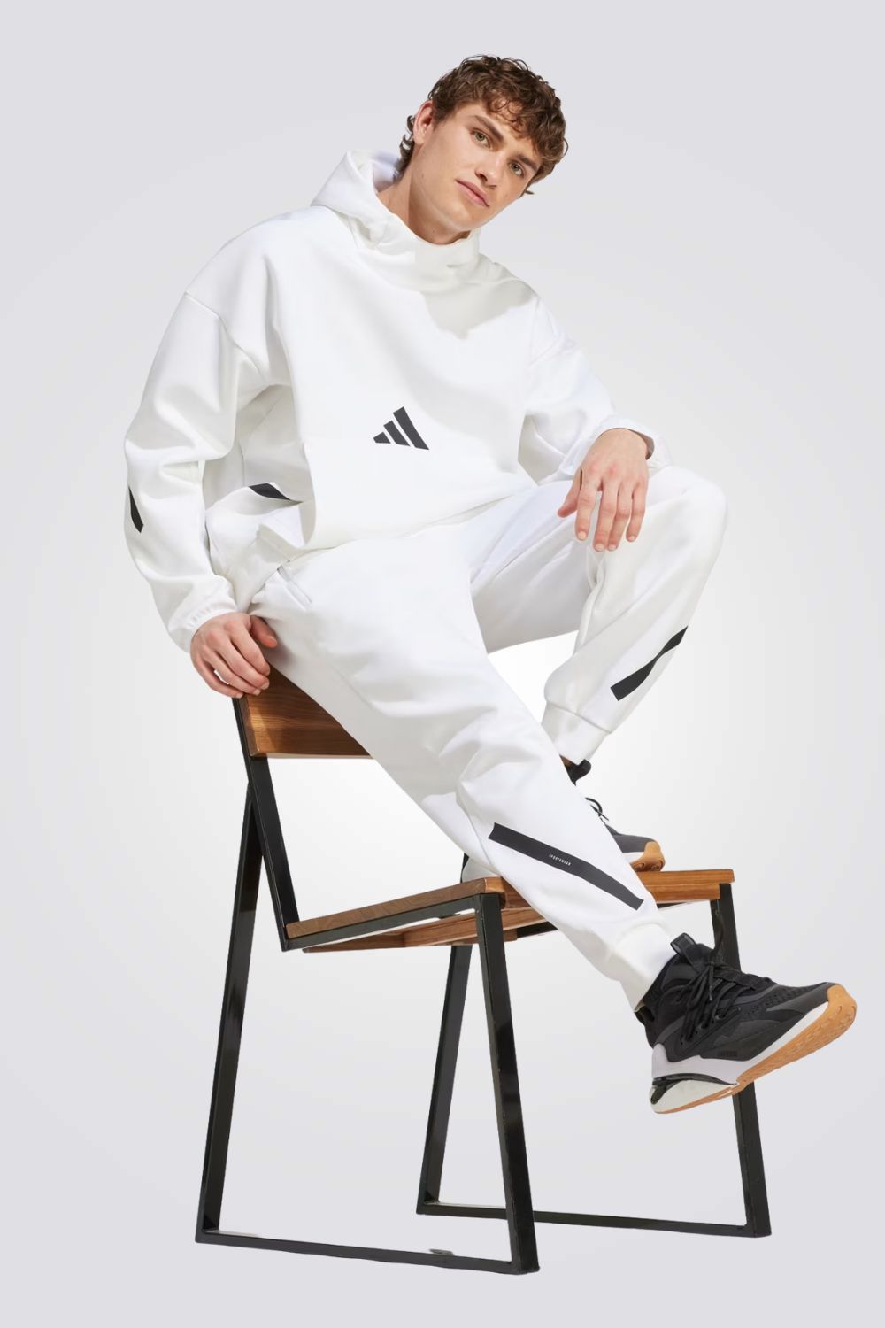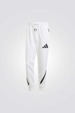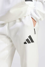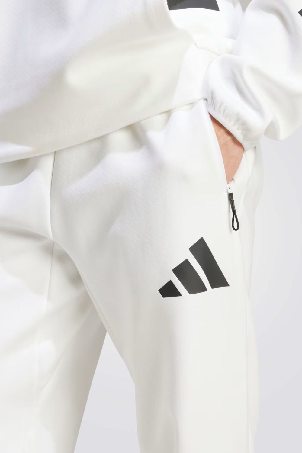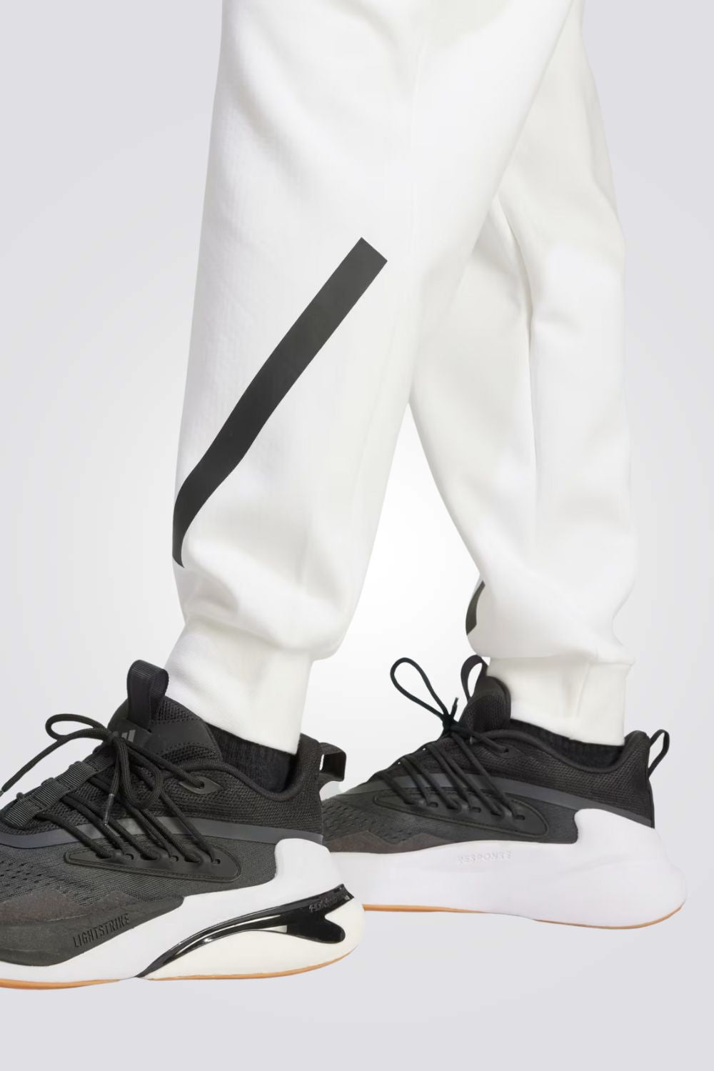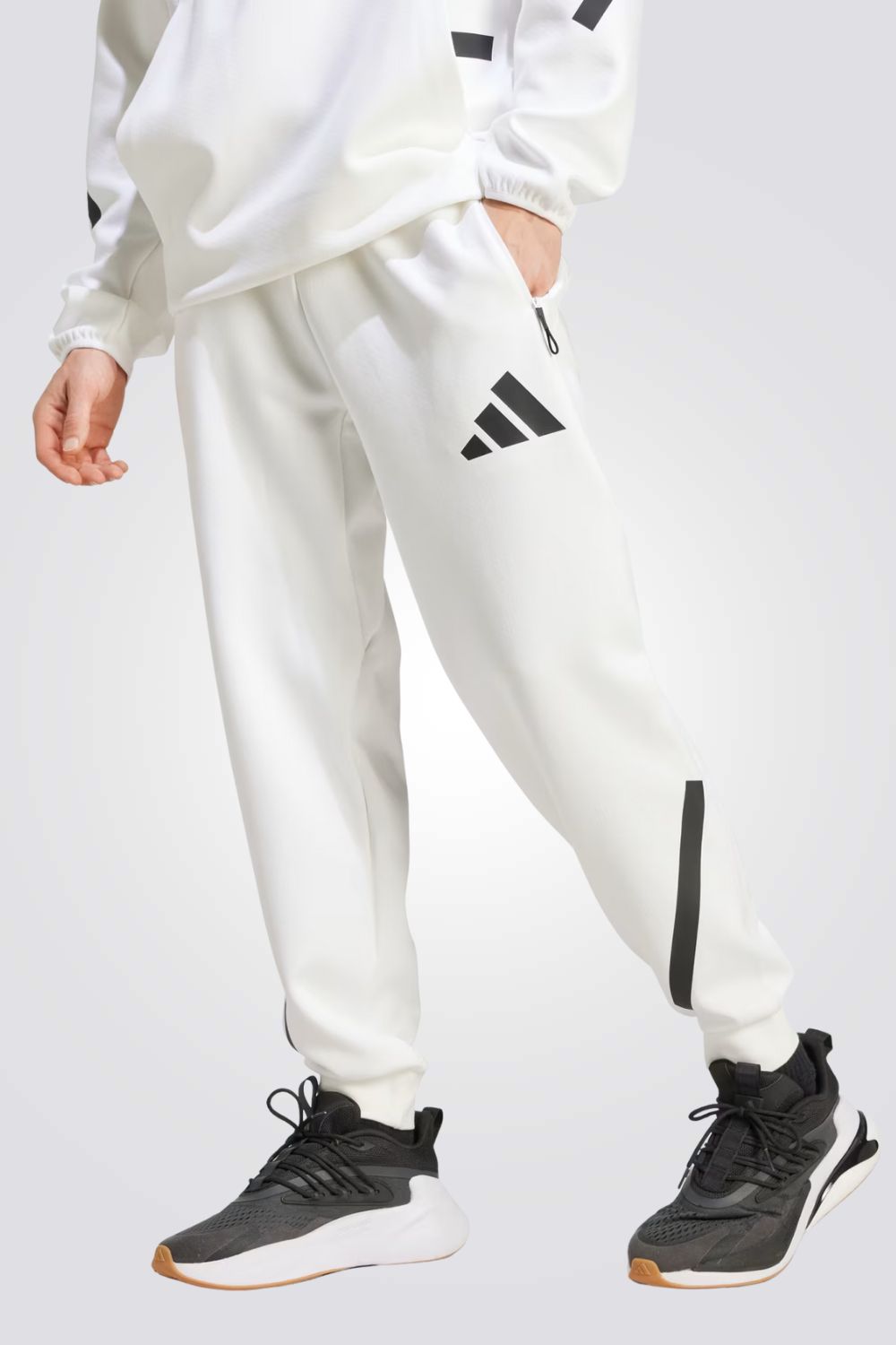 מכנסי טרנינג מבית המותג ADIDAS לגברים בצבע לבן, בגזרה מחמיאה ונוחה בגובה מותן בינוני, עשוי מבד רך, נעים ונושם, כיסים צדדיים עם רוכסן לאחסון בטוח, שרוך במותן, גומי בקרסוליים ולוגו המותג מוטבע בצד.