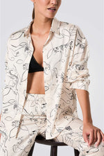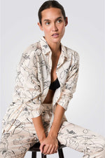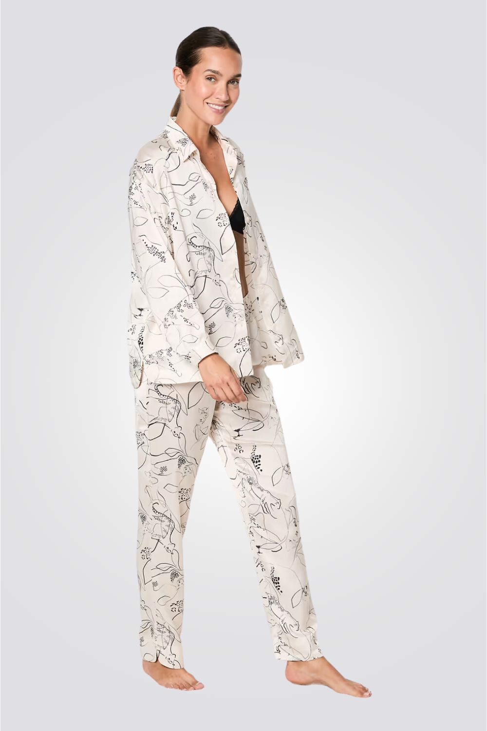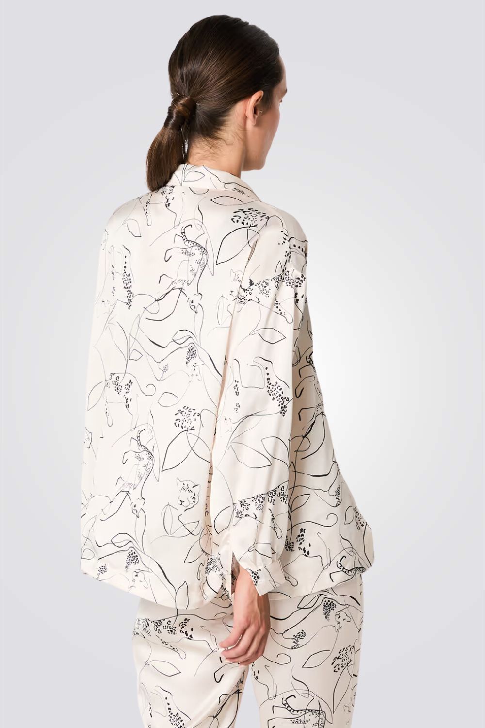חולצת פיג'מה מבד סאטן MAIME בצבע בז'