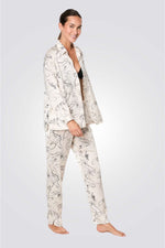 חולצת פיג'מה מבית המותג הצרפתי ETAM, עשוי בד סאטן רך ונעים, בעלת שרוולים ארוכים, הדפס פרחוני עדין בצבע שחור וסגירת כפתורים בחלק הקידמי.