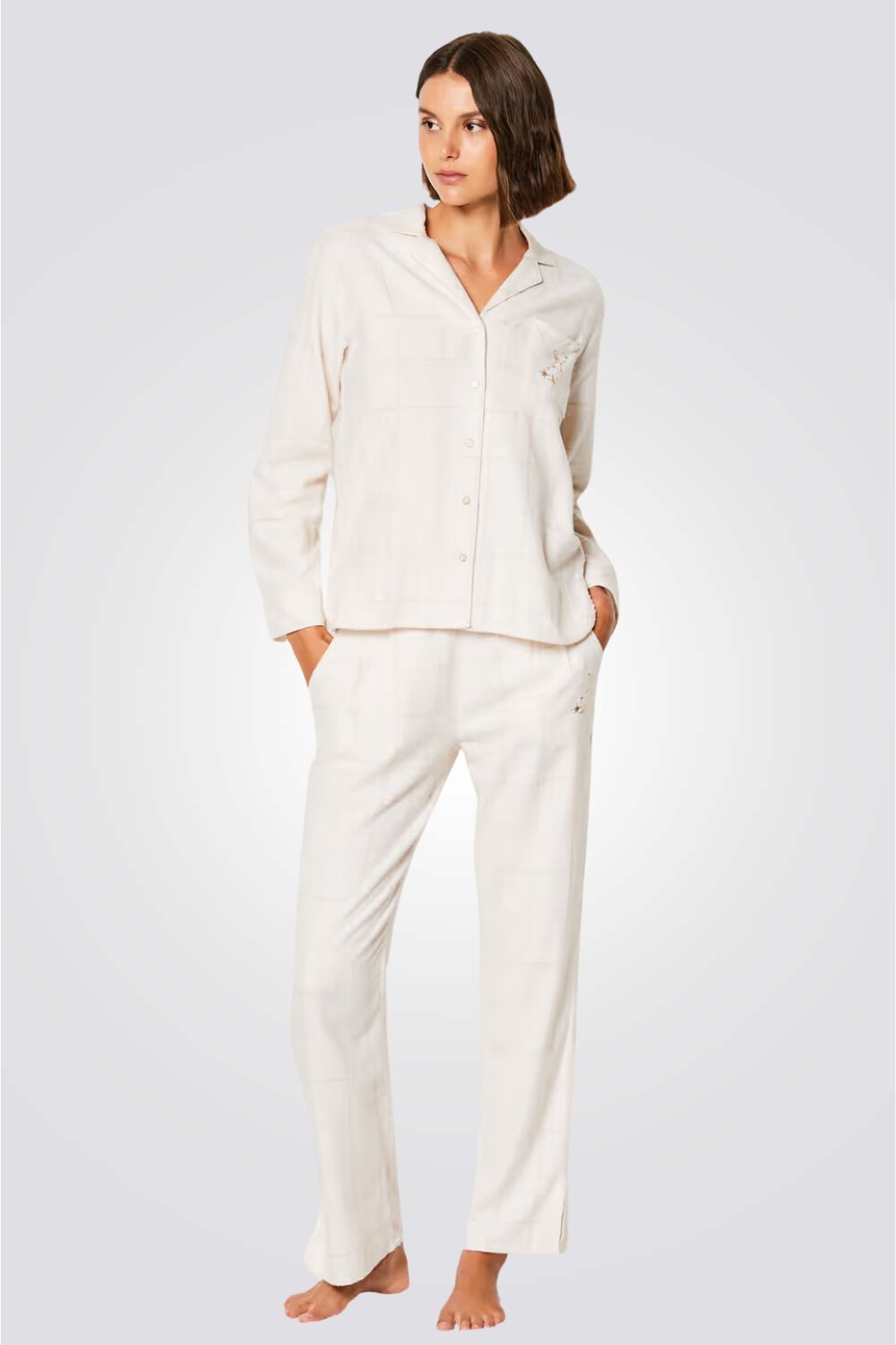 מכנסי פיג'מה ארוכים MALINA בצבע לבן