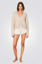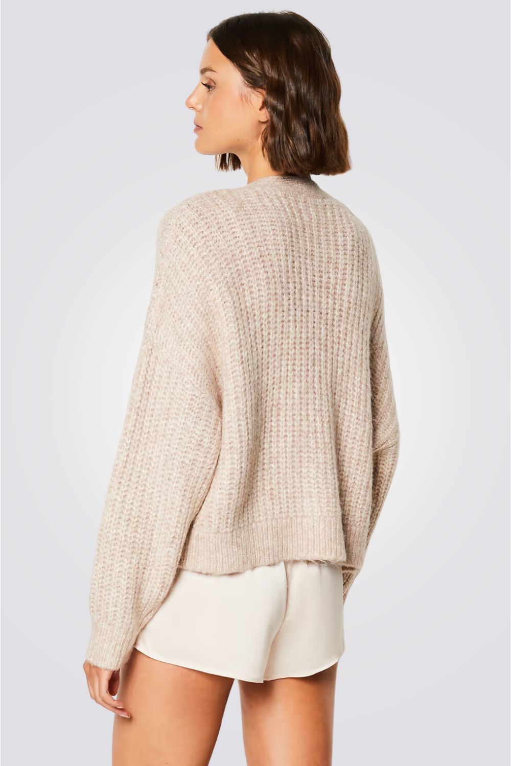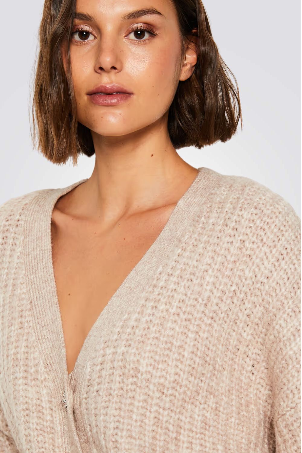 קרדיגן סרוג לנשים מבית המותג הצרפתי ETAM, עשוי מבד נעים ומחמם, עם מפתח וי עמוק, סגירת כפתורים קדמית ושרוולים רחבים.