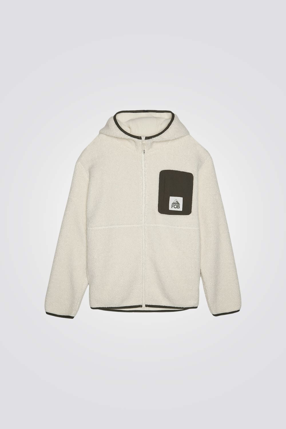 סווטשירט פליז לנשים מבית המותג F4, בצבע אוף ווייט , מחמם ועים עם סגירת רוכסן .