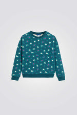 סווטשירט לילדות בצבע טורקיז עם הדפס מנומר