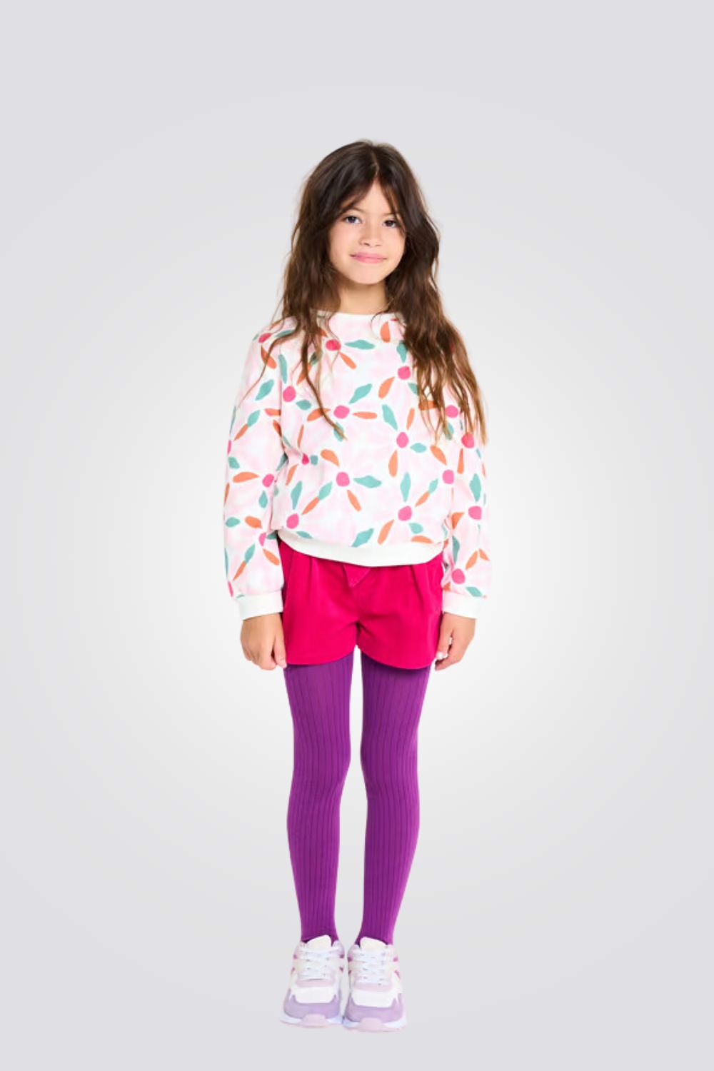 סווטשירט לילדות מבית המותג OKAIDI, מחמם ונעים, עם הדפס פרחוני, שרוולים ארוכים וצווארון עגול, מתאים ליום יום.