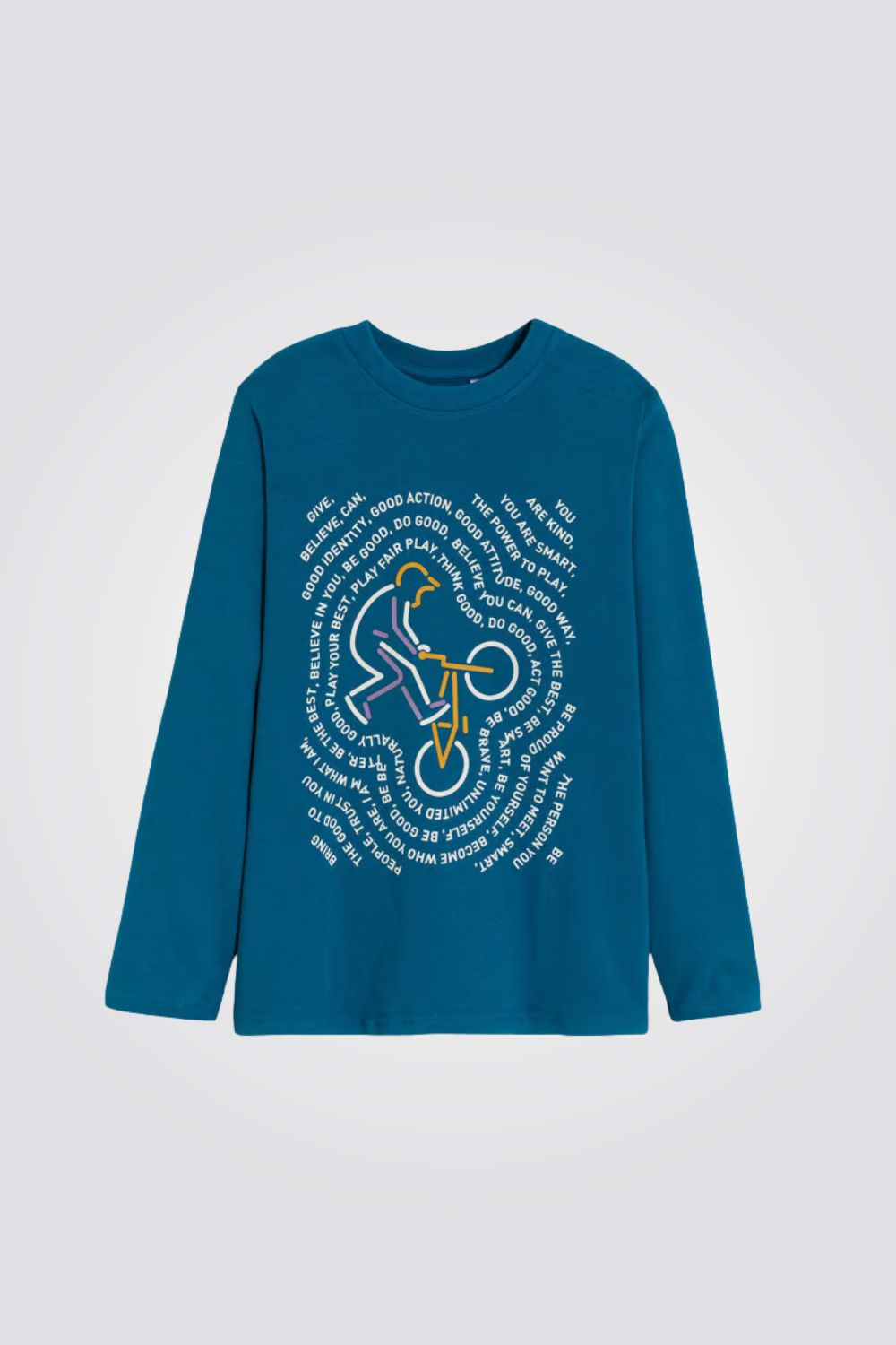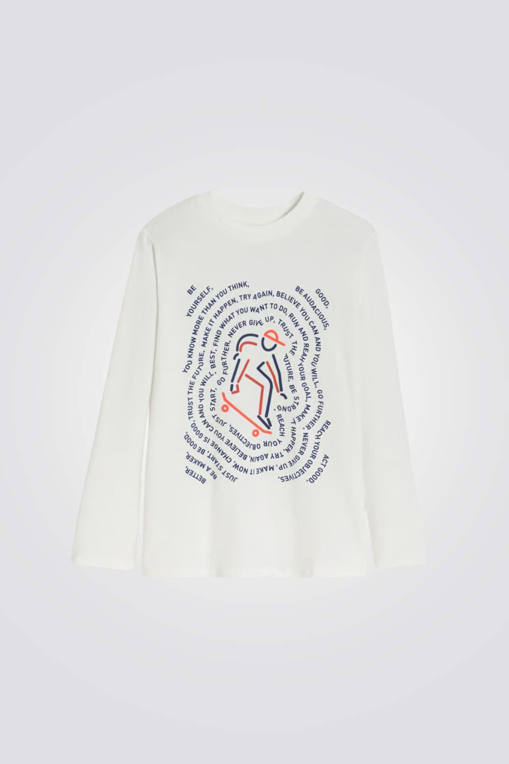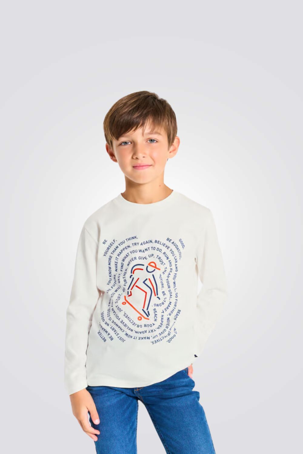 טישירט לילדים מבית המותג OKAIDI, עם שרוולים ארוכים וצווארון עגול, עשויה מבד קליל ונעים.
