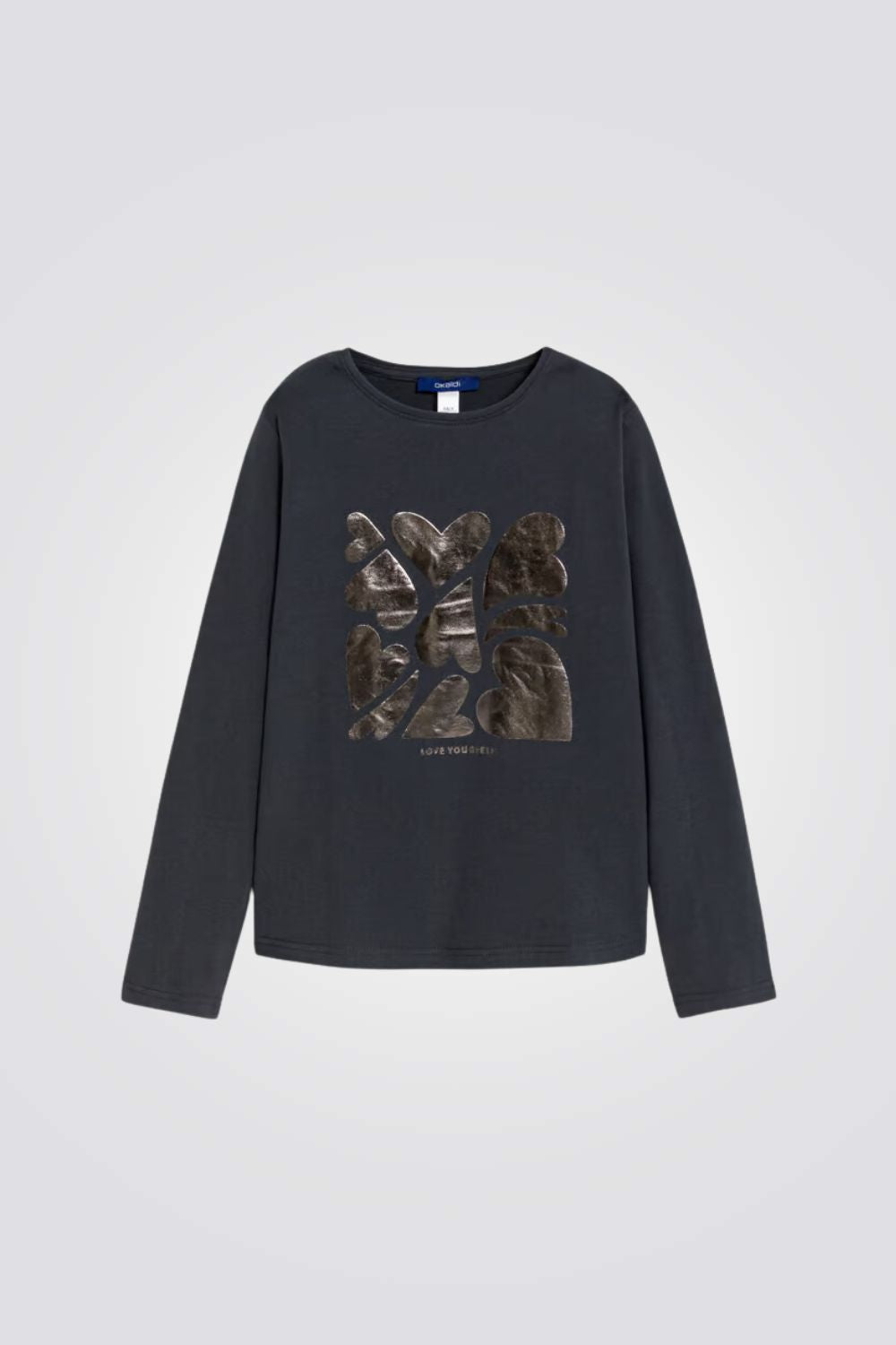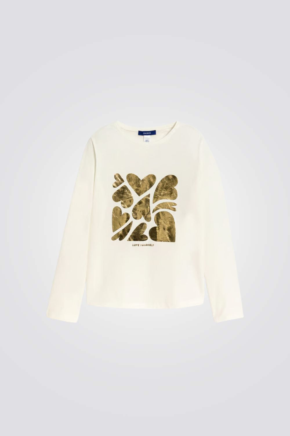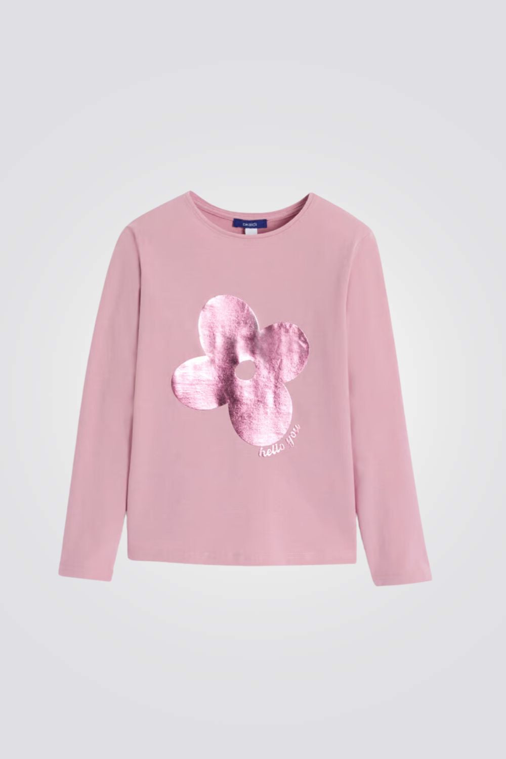 טישירט לילדות מבית המותג OKAIDI, עם שרוולים ארוכים , עשויה מבד נעים וקליל , עם צווארון עגול והדפס.