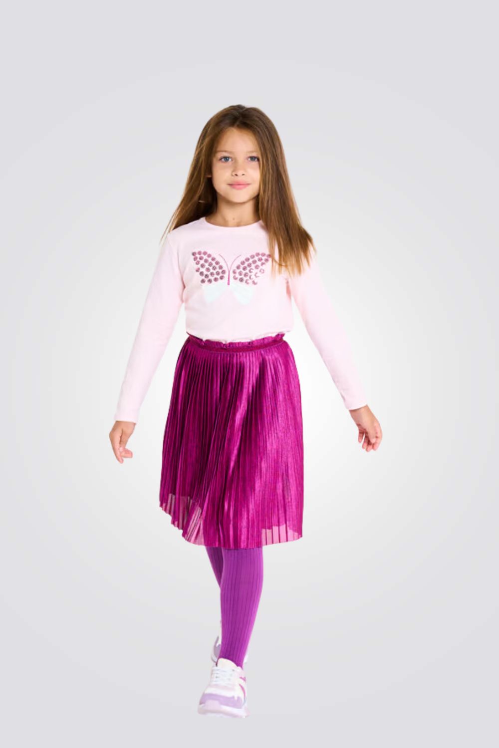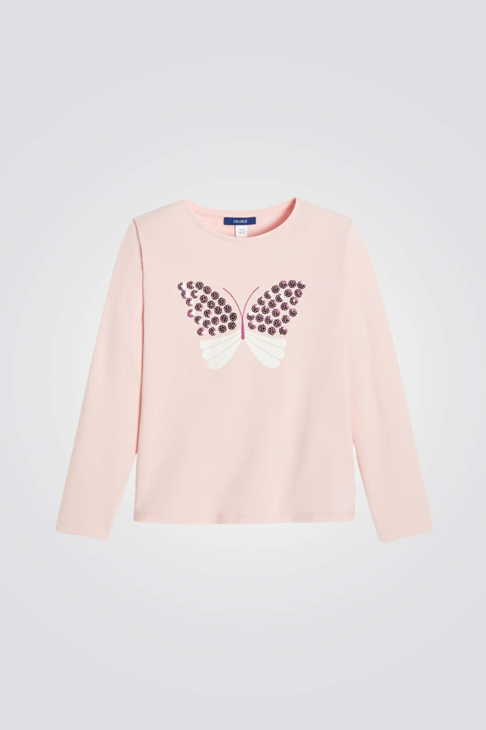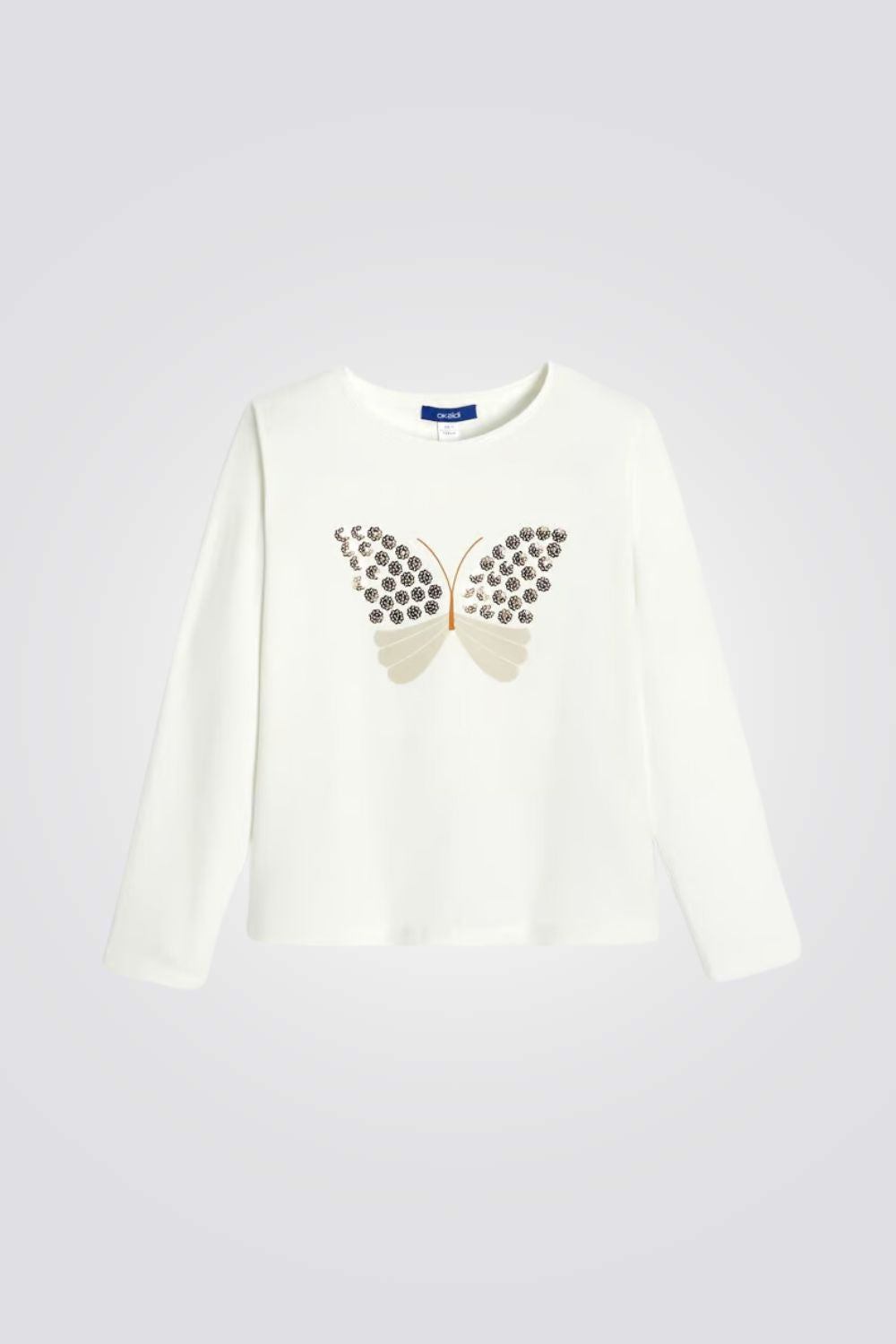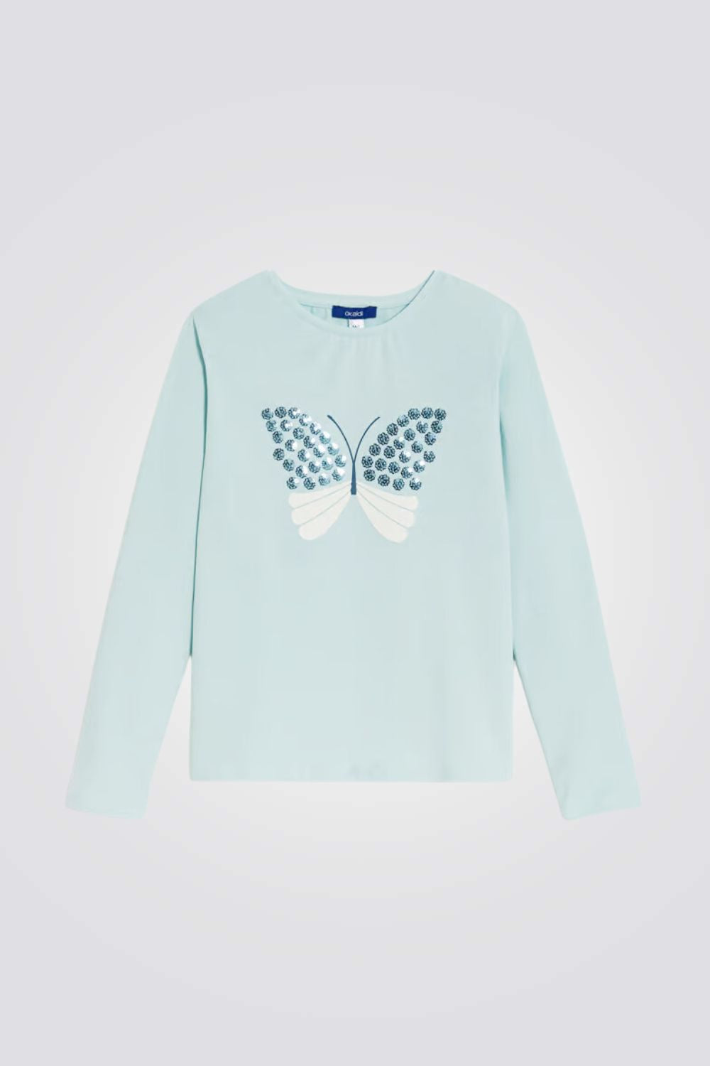טישירט לילדות מבית המותג OKAIDI, עם שרוולים ארוכים , עשויה מבד נעים וקליל , עם צווארון עגול והדפס.