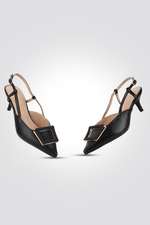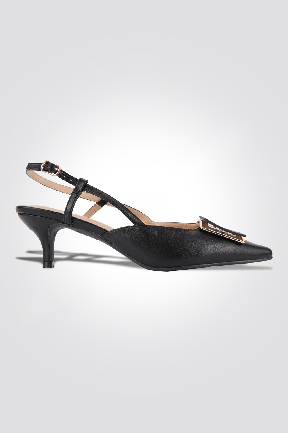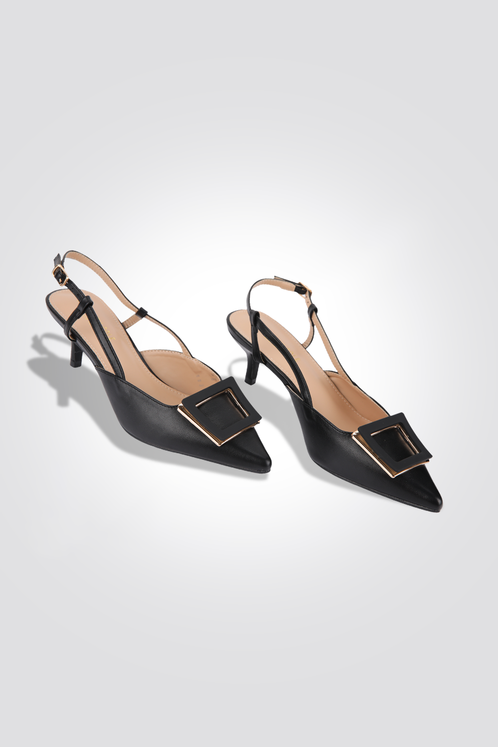 סנדל עקב אבזם מרובע 5.5 ס"מ בצבע שחור